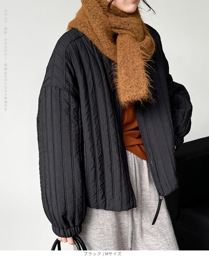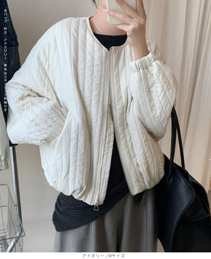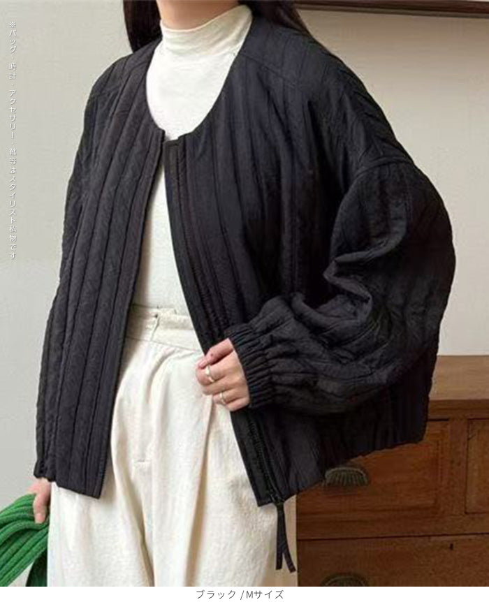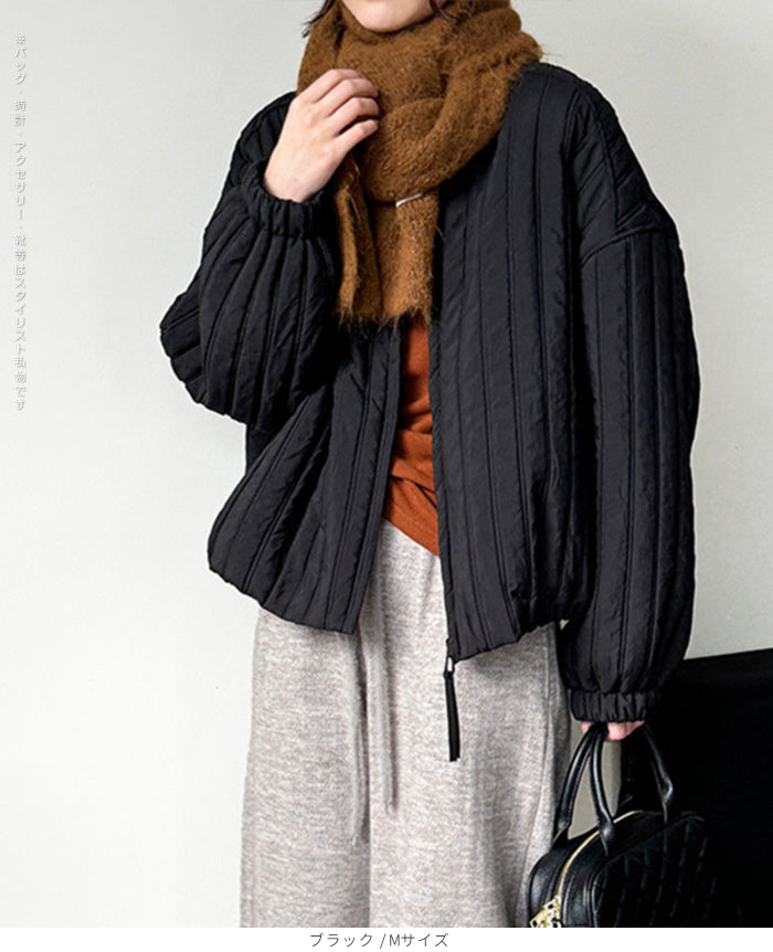 軽くてあたたかい中綿素材を使用したショート丈ジャケット。
