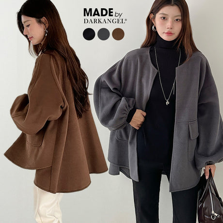 ボリュームスリーブノーカラーコート