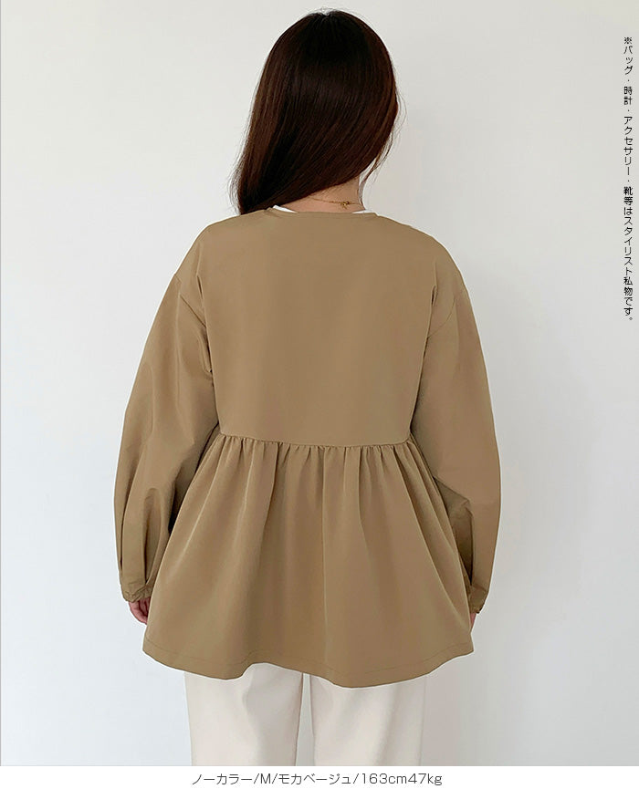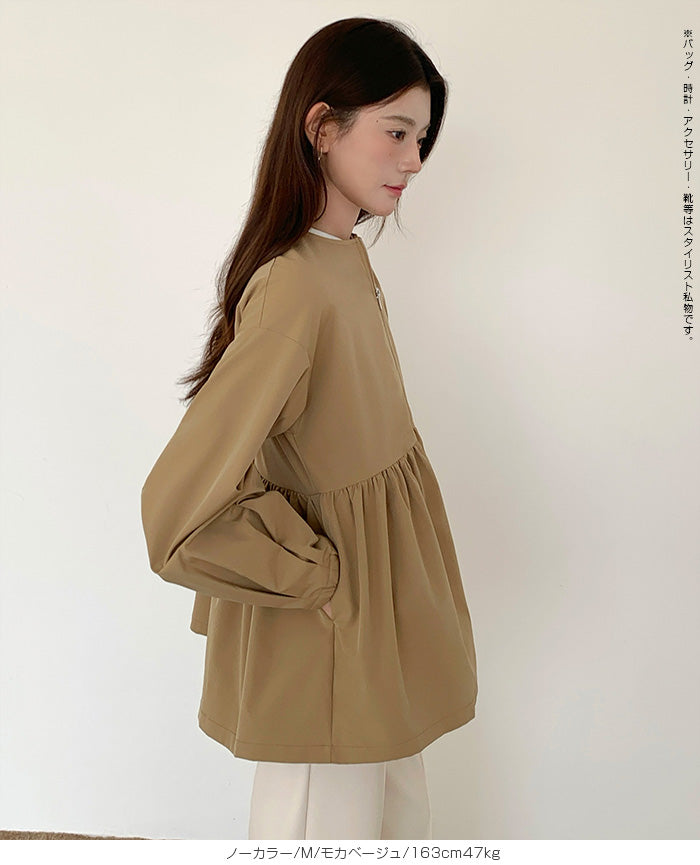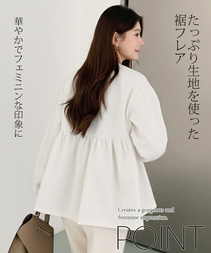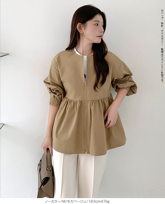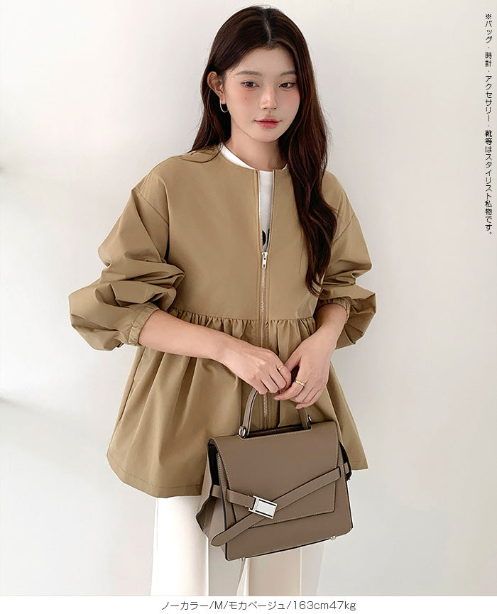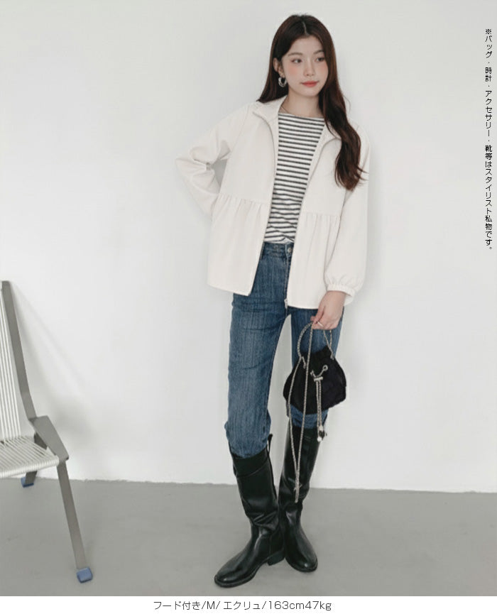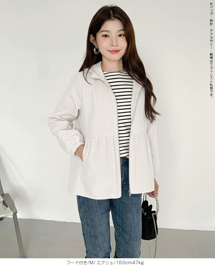 【 選べる2タイプ ヘムフレアブルゾン 】 軽やかな着心地で、季節の変わり目にぴったりのフレアブルゾン。 裾に向かってふんわり広がるシルエットが女性らしく、体型カバーも叶える優秀アイテム。 ノーカラータイプはすっきり上品に、フード付きタイプはカジュアルな抜け感をプラス。 通勤にもお出かけにも、シーンやスタイルに合わせて選べる万能ライトアウターです。 《商品ポイント》 ・選べる2タイプ(ノーカラー/フード付き) ・裾にボリュームを持たせたペプラム風フレアデザイン ・軽量でシワになりにくい生地感 ・程よくゆとりのあるシルエットで体型カバー◎ ・デイリーからオフィスまで幅広く活躍 《デザイン・シルエット》 ・ウエスト切り替えで自然なフレアラインを演出し、女性らしい印象に。 ・袖口ゴム仕様で、たくし上げたスタイリングも簡単。 ・ノーカラータイプは上品で大人っぽく、インナーを選ばない万能デザイン。 ・フード付きタイプはカジュアルでリラックス感のある雰囲気に。 ・ヒップまで隠れる丈感で安心感のある着こなし。 《コーディネート提案》 ・ノーカラータイプはスラックスやフレアスカートと合わせてきれいめに。 ・フード付きタイプはデニムやワイドパンツで抜け感カジュアルに。 ・ワンピースの上から羽織って女性らしさをプラス。 ・スニーカーにもパンプスにも合わせやすく、オンオフ兼用で活躍。 《サイズ・カラーバリエーション》 サイズ:M / L カラー:ブラック / ネイビー / モカベージュ / エクリュ " 《素材・機能性》 ・素材:ポリエステル80%、綿20% ・透け感:なし ・伸縮性:なし ・厚み:普通 |