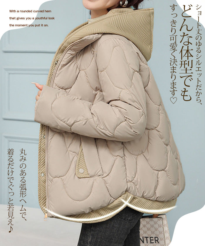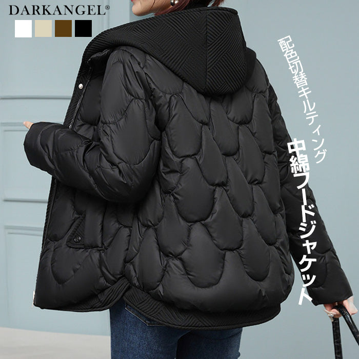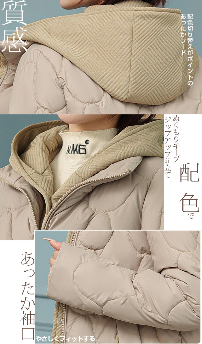 配色切替キルティング中綿フードジャケット
