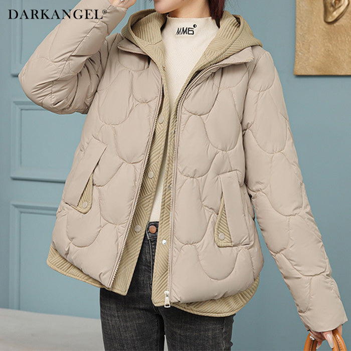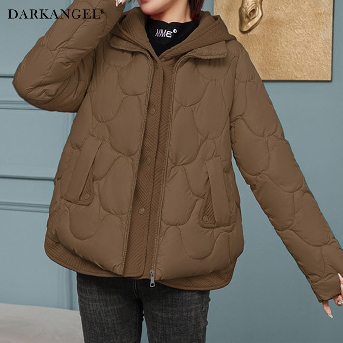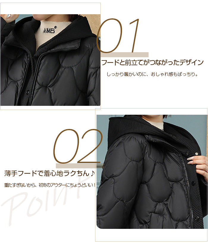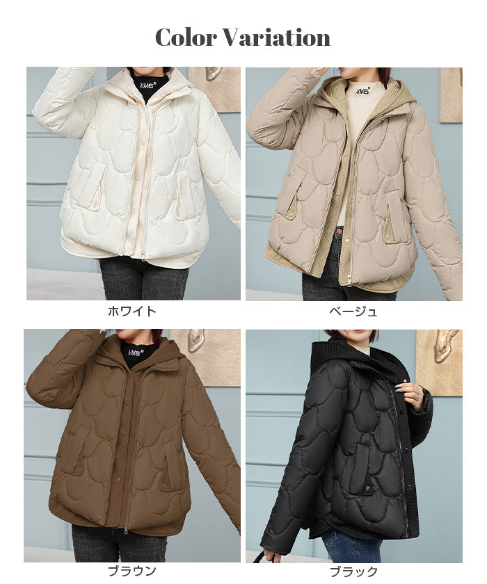 【配色切替キルティング中綿フードジャケット 】 配色切替のデザインがポイントの キルティング中綿フードジャケット。 軽い着心地ながらしっかり暖かく、 冬場のデイリーアウターとして大活躍。 立体的なキルティングとフードまわりの 異素材切替がアクセントになり、 シンプルなコーデに羽織るだけでこなれ感のある スタイリングが完成します。 程よくゆったりしたシルエットでニットの上からも 窮屈感なく着用できます。 《商品ポイント》 配色の異素材切替がアクセント ふんわり軽い中綿素材でしっかり防寒 フード付きで首元まで暖かい 体型カバーも叶うゆったりシルエット ショート丈でバランスよく着られる 冬のデイリーに最適な万能アウター 《デザイン・シルエット》 立体キルティングでやわらかく女性らしいシルエット 襟・フード・裾の切替生地がアクセントに 程よいボリューム感で着膨れしにくい設計 ストレスなく動けるゆったりめサイジング ショート丈でパンツにもスカートにも合わせやすい 《コーディネート提案》 デニムと合わせてカジュアルな冬コーデに ニットワンピースに羽織って大人フェミニンに タートルネック×スキニーでメリハリコーデ スウェットセットアップと合わせてもこなれ見え モノトーンコーデのアクセントにも◎ 《サイズ・カラーバリエーション》 サイズ:M / L / XL カラー:ブラウン / ブラック / ホワイト / ベージュ 《素材・機能性》 軽量中綿素材で軽い着心地 フード付きで首元まで暖かい 配色切替の異素材デザインがポイント 防寒性と動きやすさを両立 |
