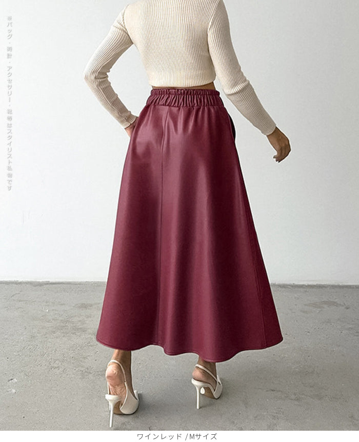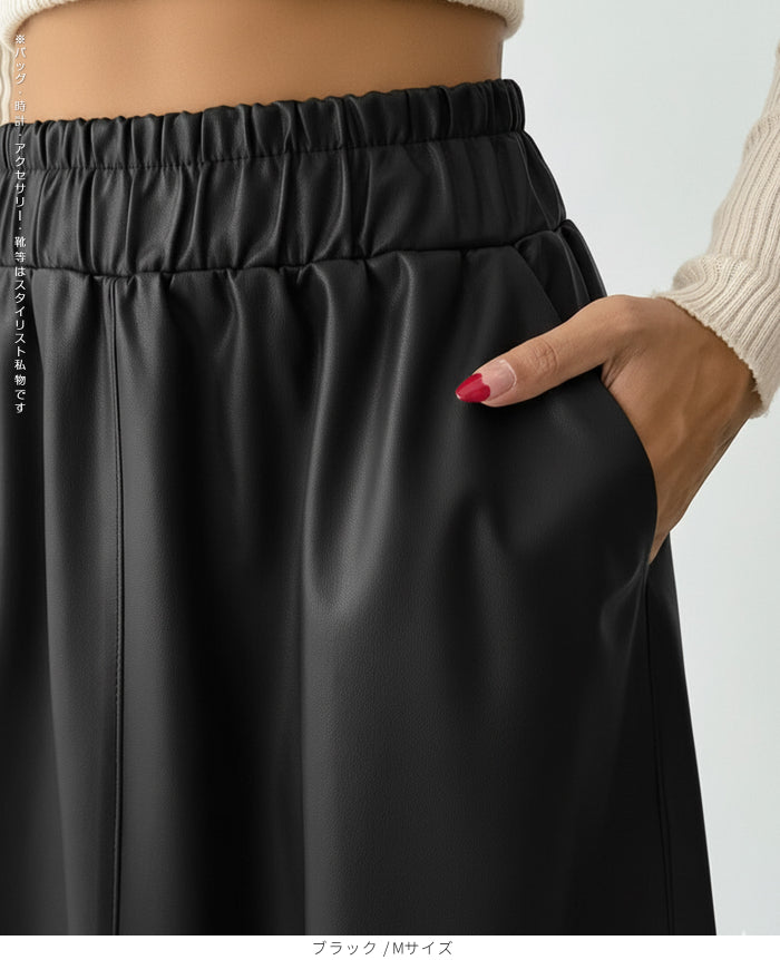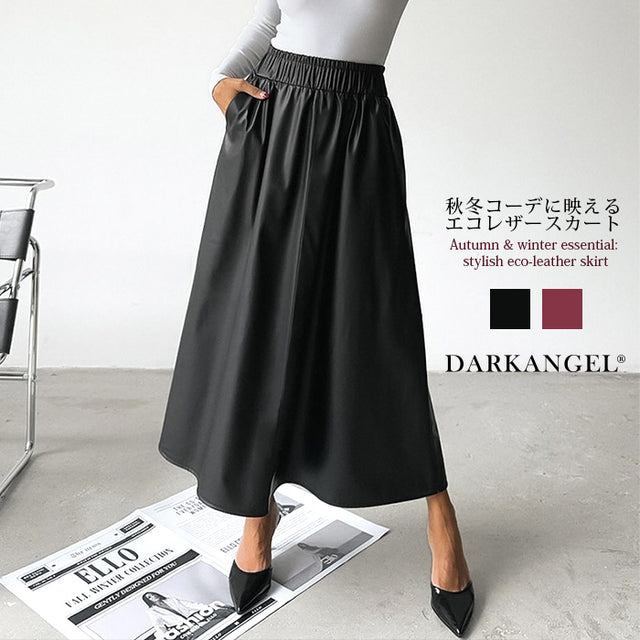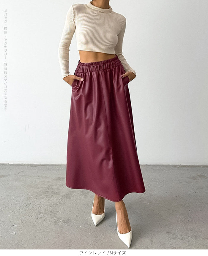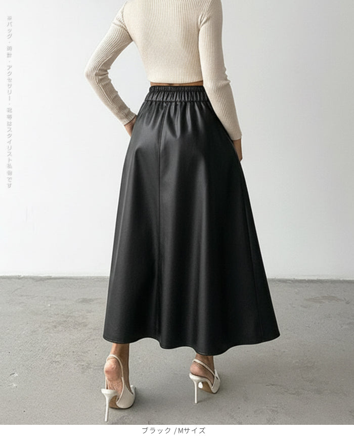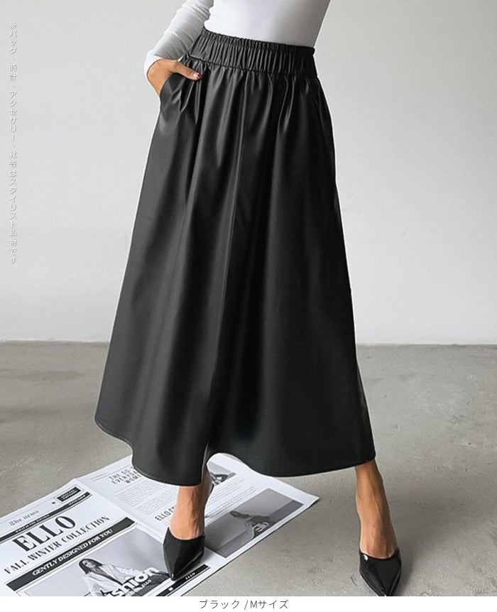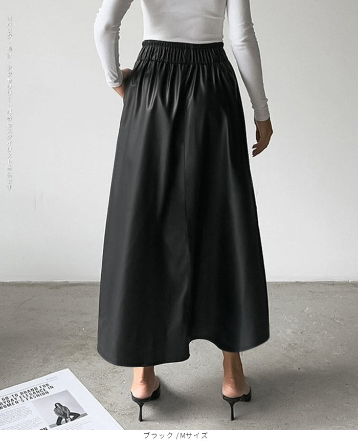 上品なツヤ感が魅力のエコレザー素材を使用したAラインスカート。