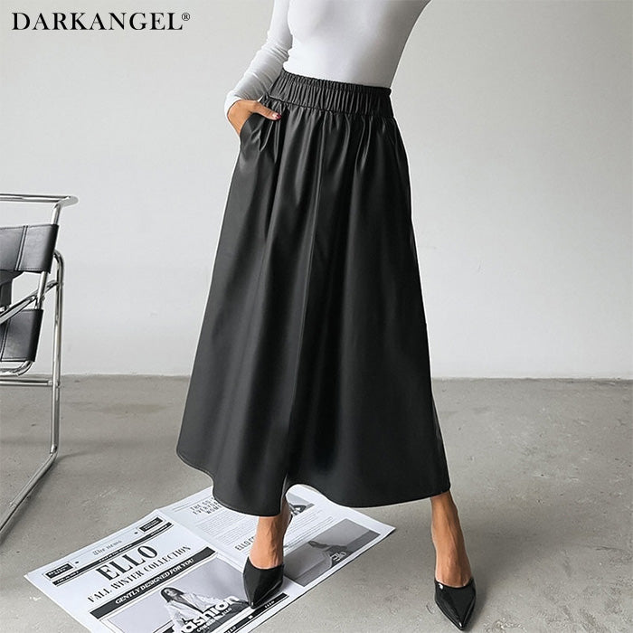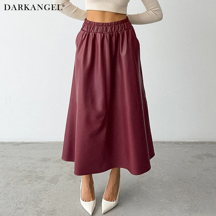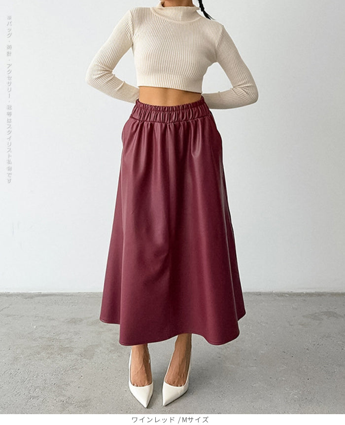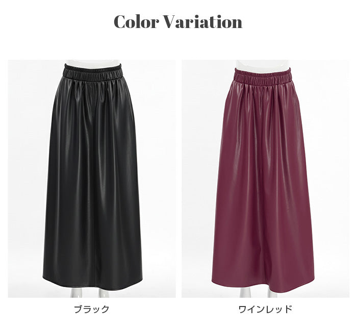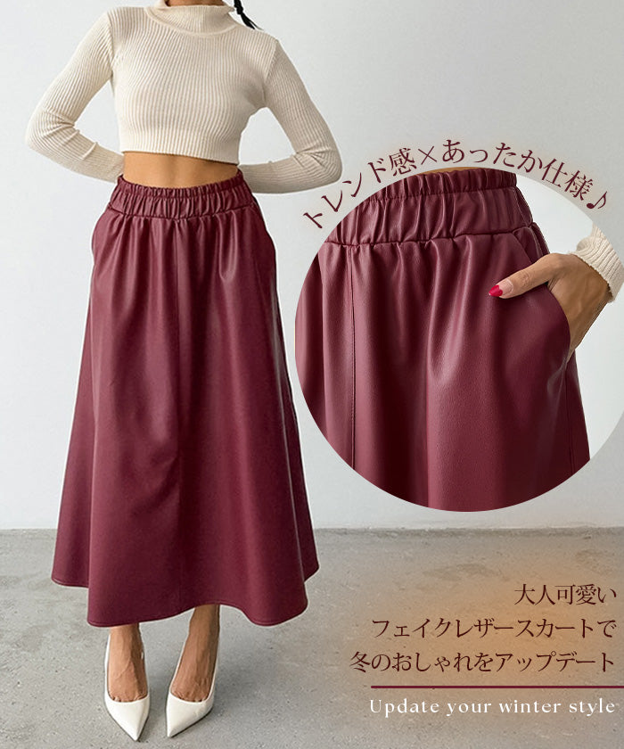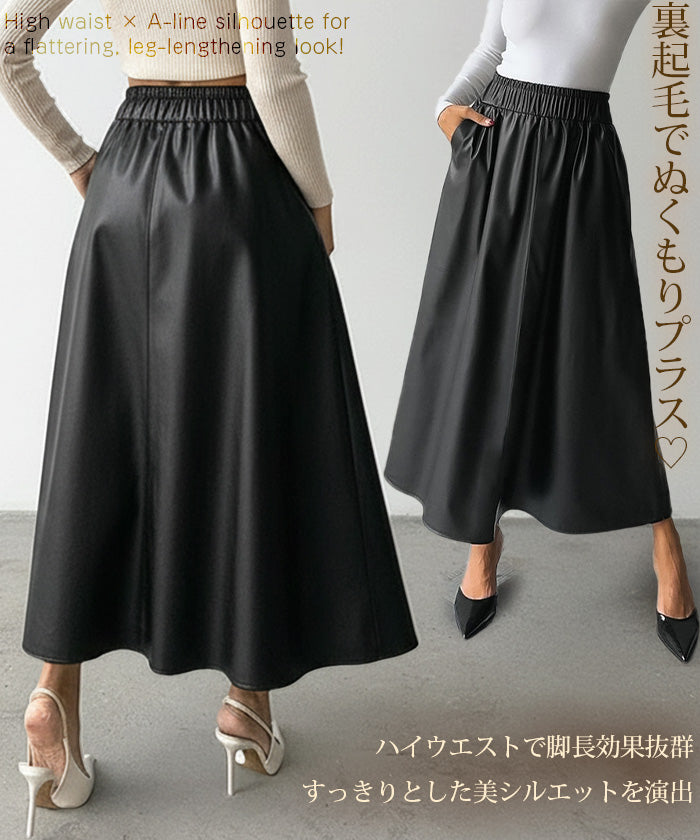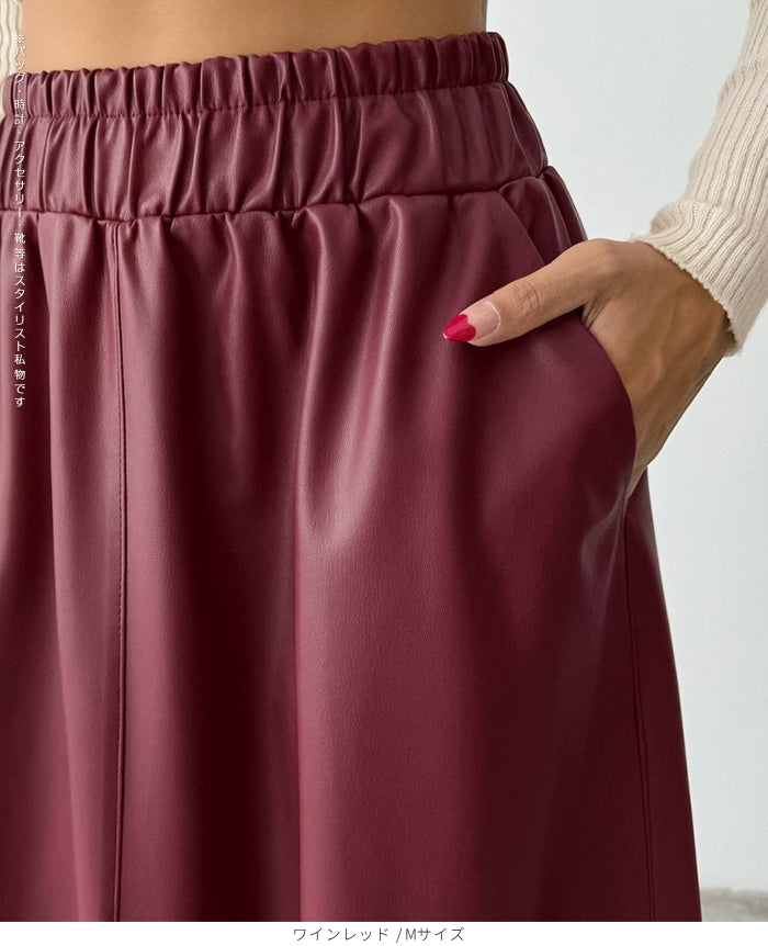 上品なツヤ感が魅力のエコレザー素材を使用したAラインスカート。