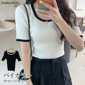 【 バイカラーサマーリブニット 】