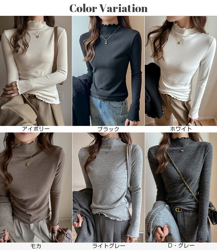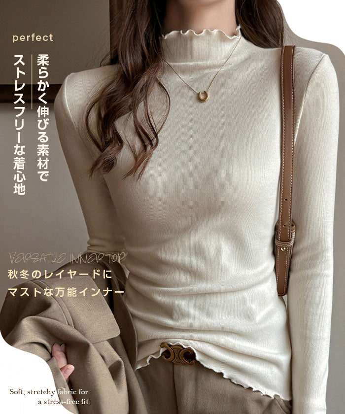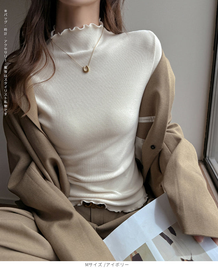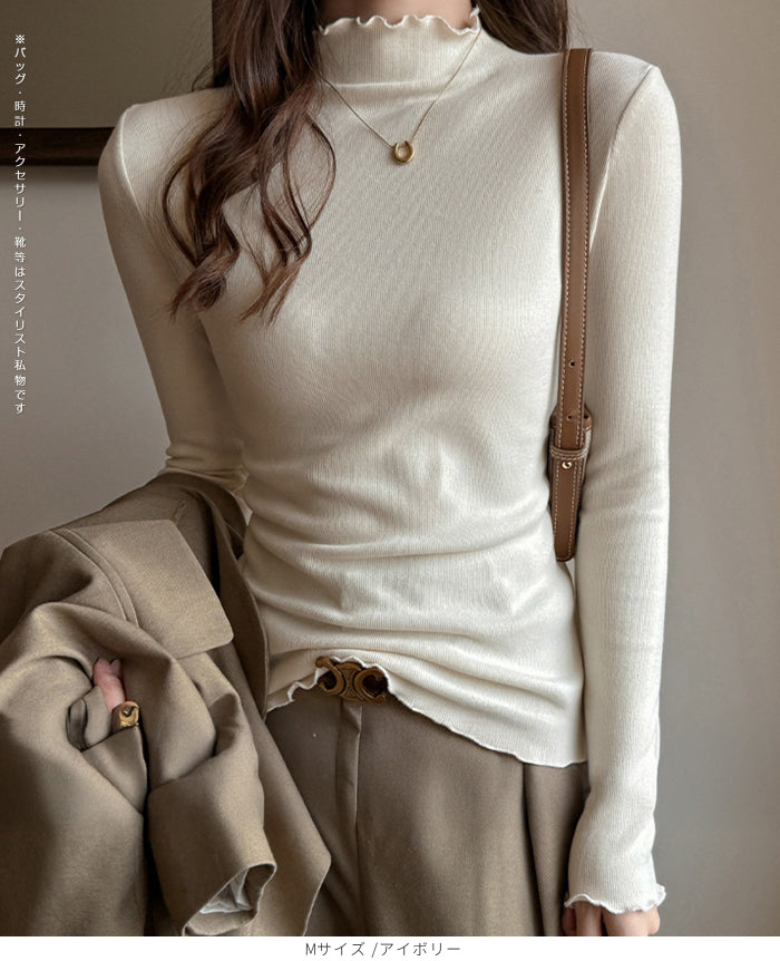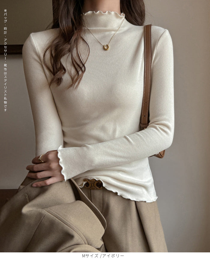 【メロウフリルハイネックリブニットトップス】 ふんわりとしたメロウフリルが女性らしい印象を与える、 ハイネックデザインのリブニットトップス。 伸縮性に優れたリブ編み素材で、 体にやさしくフィットしながらも快適な着心地。 1枚でも、ジャケットやカーディガンの インナーとしても活躍します。 程よい厚みで秋冬から春先まで長く使える万能アイテムです。 《商品ポイント》 ・上品なメロウフリルのハイネックデザイン ・リブ編みで縦ラインが強調され、すっきり美見え ・軽くて柔らかく、長時間着てもストレスフリー ・シンプル無地でどんなコーデにも合わせやすい ・1枚でもレイヤードでも使える着回し力◎ 《デザイン・シルエット》 体のラインをきれいに見せるフィットシルエット。 ネック・袖口・裾にあしらわれたメロウフリルが、 大人の可愛さをさりげなくプラス。 シンプルながら女性らしさを引き立てる上品デザインです。 《コーディネート提案》 ・ジャケットのインナーに合わせて通勤スタイルに ・ワイドパンツやデニムで大人カジュアルに ・スカートと合わせてフェミニンな印象に ・ワンピースのインナーにもぴったり 《サイズ・カラーバリエーション》 【カラー】 ・ホワイト ・アイボリー ・モカ ・ライトグレー ・Dグレー ・ブラック 【サイズ】 S/M/L/XL 《素材・機能性》 ポリエステル100% 伸縮性:あり 生地の厚さ:普通 透け感:ホワイト・淡色のみややあり 裏地:なし シワになりにくく、お手入れも簡単なポリエステル素材。 滑らかな肌触りで、快適なフィット感をキープします。 |
