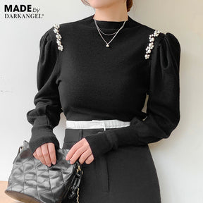 [関連ワード] ニット レディース 秋冬 秋 トップス ハイネック セーター バルーンスリーブ パフスリーブ ランタンスリーブ ボリューム袖 パール パール付き きれいめ オフィス ギャザー お呼ばれ 同窓会 参観日 【 パール付きランタンスリーブニットトップス 】 ダークエンジェル M L LL XL XXL 2L 3L 20代 30代 40代 50代 おしゃれ お洒落 オシャレ かわいい 可愛い カワイイ ダークエンジェル だーくえんじぇる darkangel Dark Angel DARK ANGEL