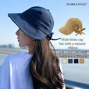 ナチュラルリボン付きつば広キャップハット