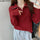 リブニット ハーフジップ ファスナー 襟付き 長袖 レディース セーター トップス プルオーバー ポロニット ハイネック タートルネック 白 黒 赤 ブラウン アイボリー【ハーフジップリブニット】