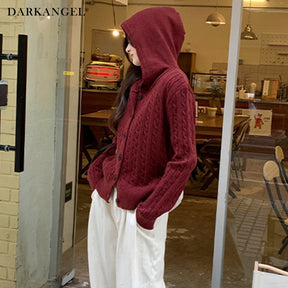 ケーブル編みフーディーカーディガン
