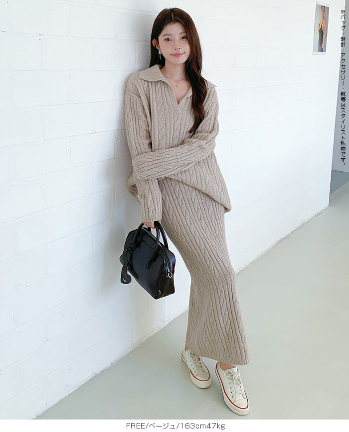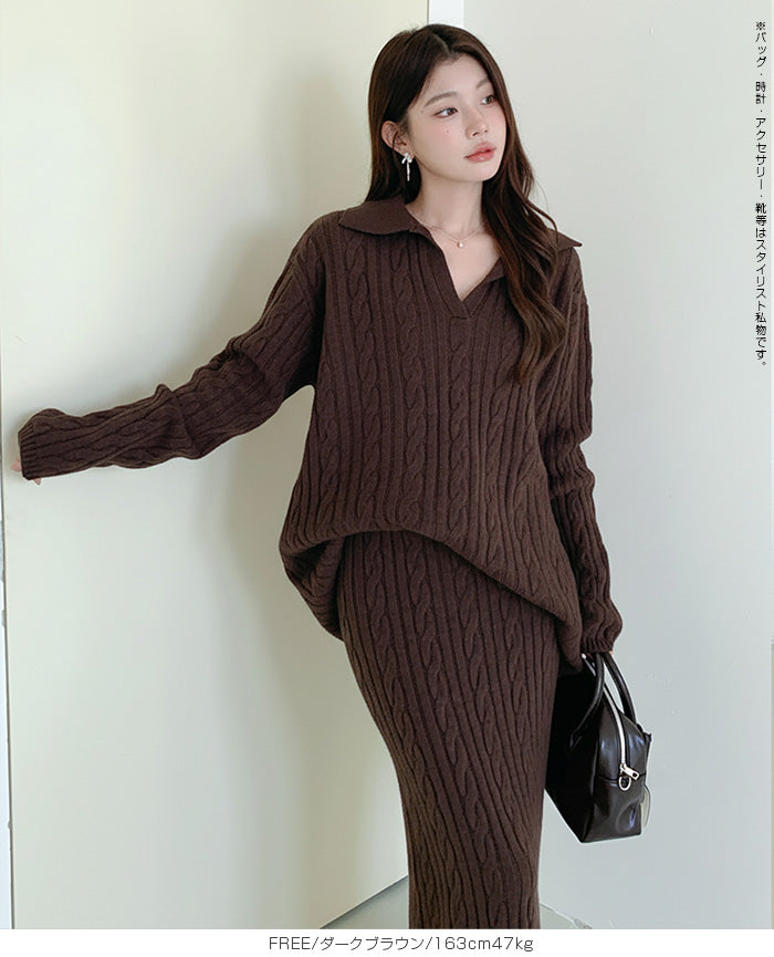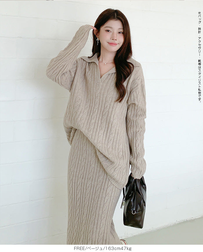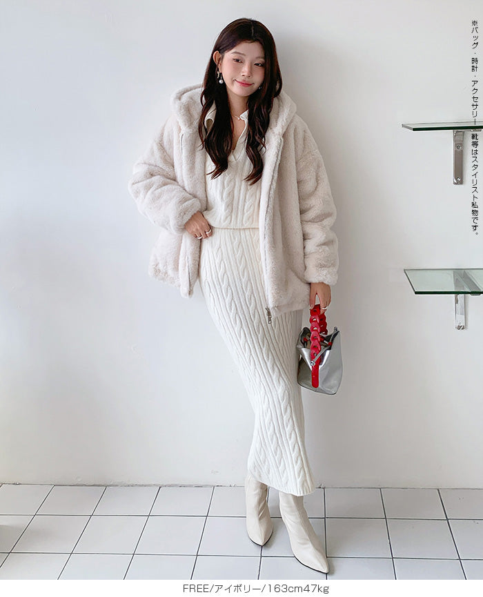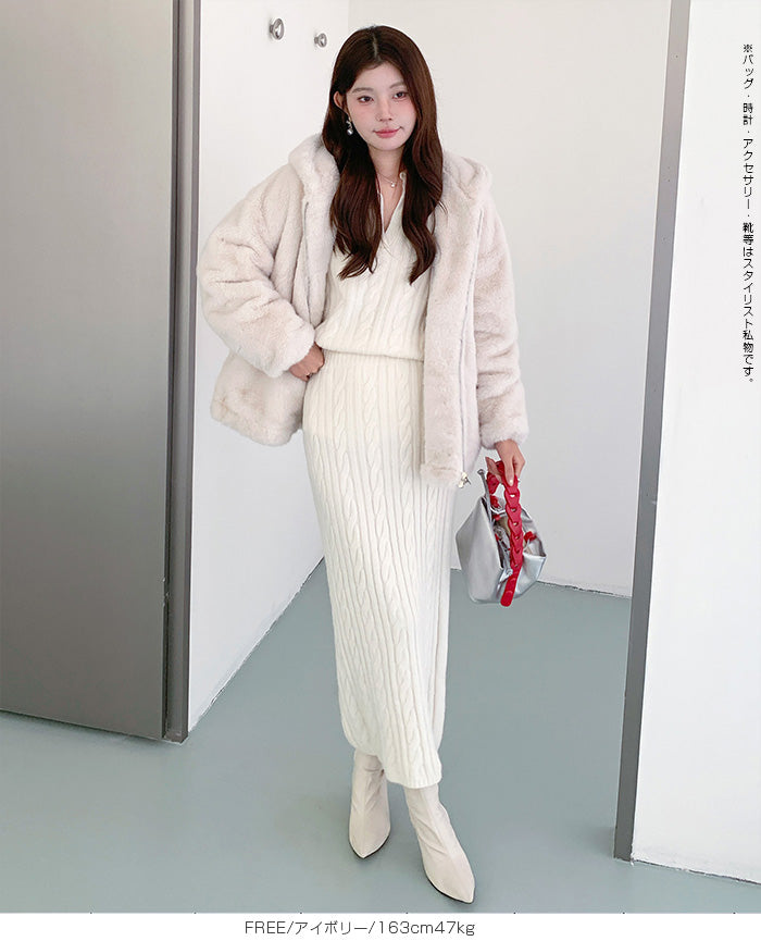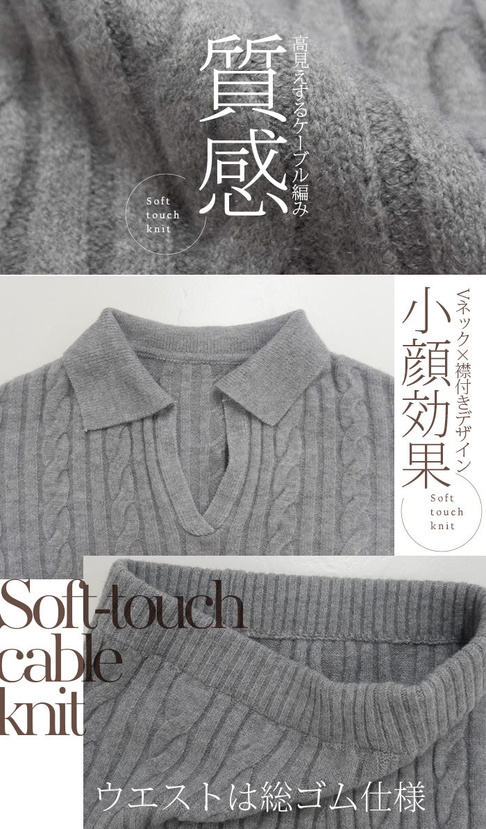 ふっくら肉厚で伸縮性のあるケーブルニット素材。