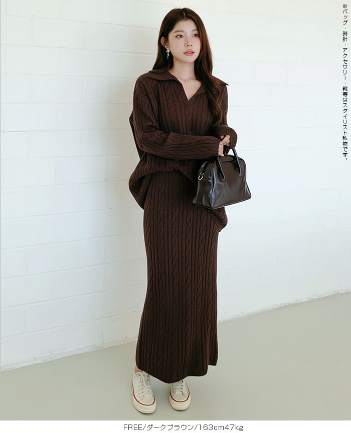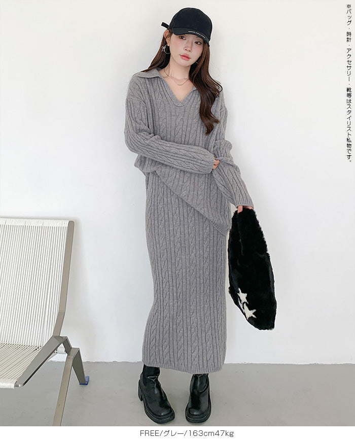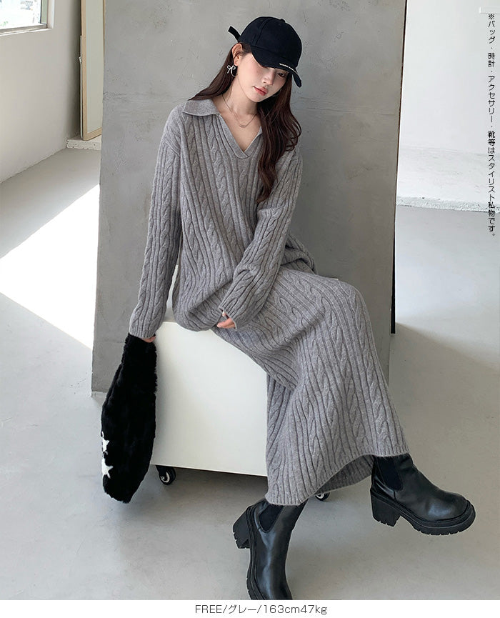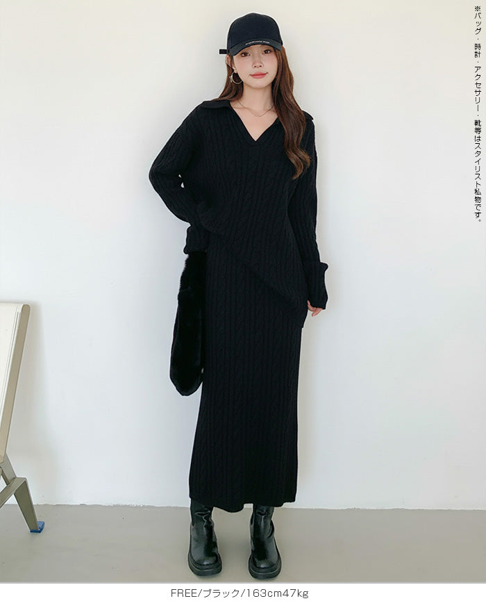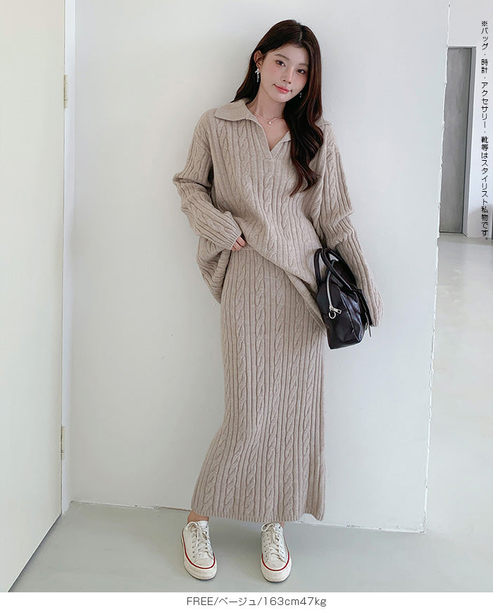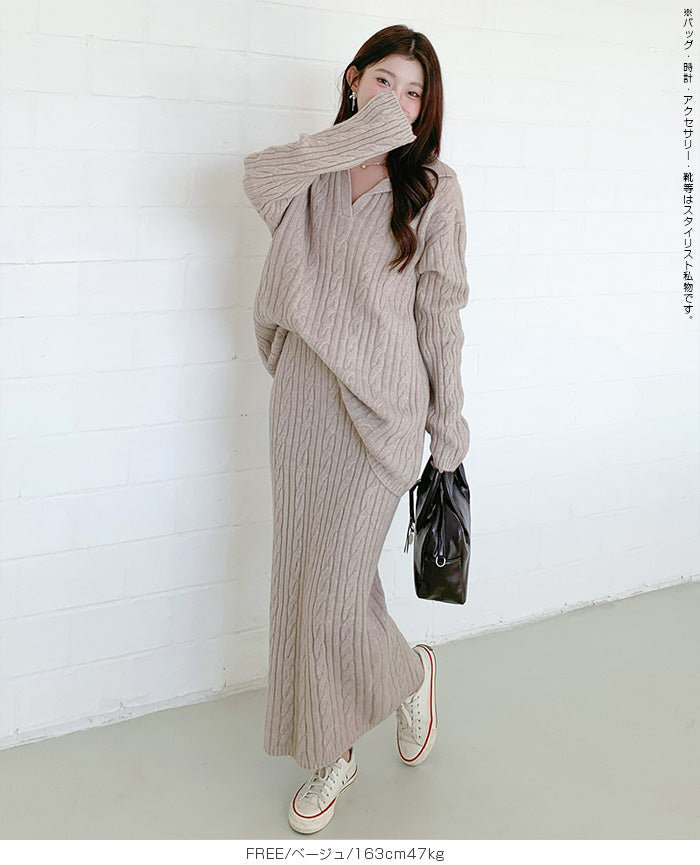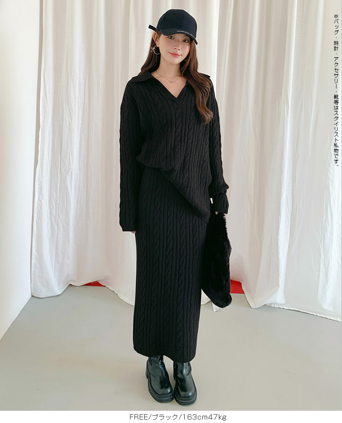 ふっくら肉厚で伸縮性のあるケーブルニット素材。