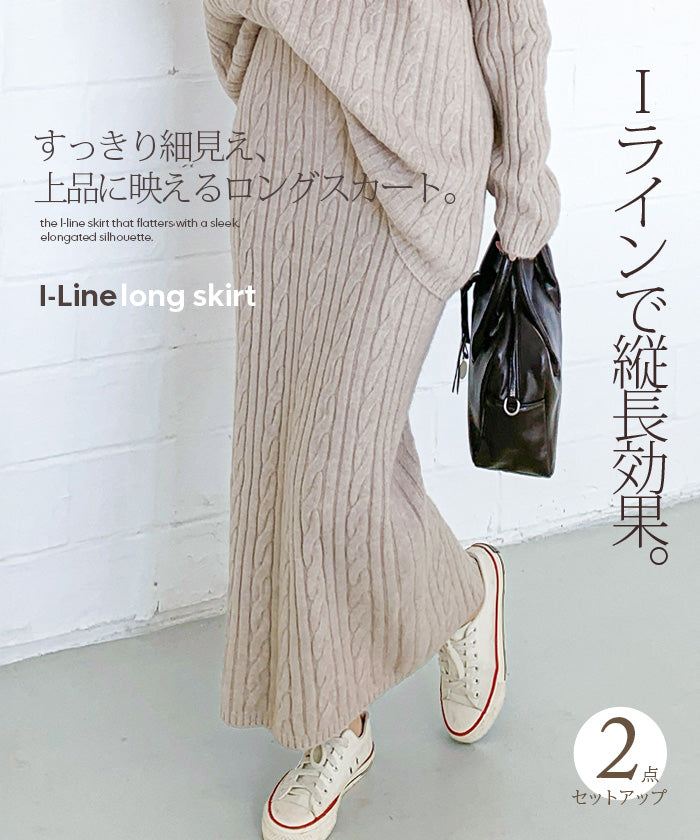 スカートは身体のラインを拾いすぎないIラインのロング丈で、
