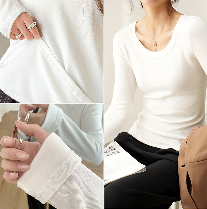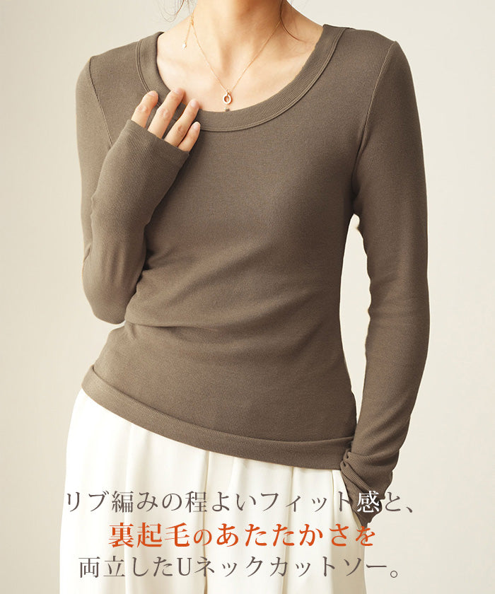 Uネック裏起毛リブカットソー - ホワイト / S ...は取り寄せ中で入荷次第発送します。