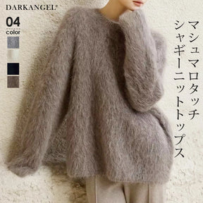 マシュマロタッチラウンドネックシャギーニットトップス