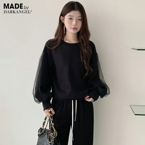 本体はミニマルなデザインでありながら、袖のチュール切り替えがポイント。