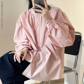 [関連ワード] 商品関連:シャツ ボリューム ブラウス レディース トップス シャツブラウス 春 長袖 バンドカラーノーカラー チュニック ゆったり 体型カバー きれいめ ゆったりシルエット 春コーデ オフィスカジュアル 抜け感 オーバーサイズ ふんわり袖 20代 30代 40代 50代 おしゃれ お洒落 オシャレ かわいい 可愛い カワイイ ダークエンジェル だーくえんじぇる darkangel Dark Angel DARK ANGEL カラー展開: ホワイト 白 ピンク サイズ展開: M L