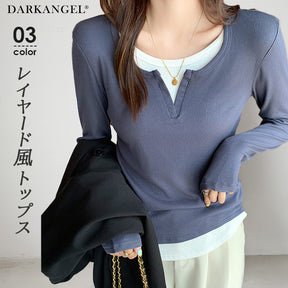 ・レイヤード風の裾&襟デザインで、1枚でも様になる優秀トップス
