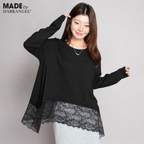 秋冬コーデの悩み「何を重ねればおしゃれに見える?」を解決。 ふんわり裏起毛カットソーに繊細なフローラルレースをドッキングした、レイヤード専用ロンT。 ニットやスウェットの裾からレースを覗かせるだけで、いつものコーデが一瞬で“今っぽい”印象に。 前後差のあるレースヘムが気になるお腹・お尻まわりを自然にカバーし、縦長効果ですっきり見せも叶います。 伸縮性のある生地+軽い着心地で重ね着してもごわつきにくく、秋冬のインナーとしてヘビロテ必至。 白レースは上品フェミニンに、黒レースは大人の抜け感を演出してくれます。 ニット、スウェット、ワンピース、コートインナーまで使える、万能レイヤードトップスです。 【素材感・着心地】 ●身頃:裏起毛カットソー 肌に触れる面がふんわり起毛した柔らかな素材。 ・チクチクせず素肌に優しい ・程よい肉厚で秋〜春先まで活躍 ・ストレッチ性が高くノンストレス ●裾レース 繊細で上品なフローラル柄レースを贅沢に使用。 歩くたび揺れるスカラップデザインが、コーデを華やかにしてくれます。 【シルエット・サイズ感】 ゆったり身幅のリラックスシルエット ヒップまわりまでしっかり隠れる安心丈 前後で丈差をつけたイレヘム×レースで脚長効果 ドロップショルダーで二の腕も華奢見せ “お腹・お尻・腰まわり”をカバーしつつ、おしゃれに見える計算されたライン |