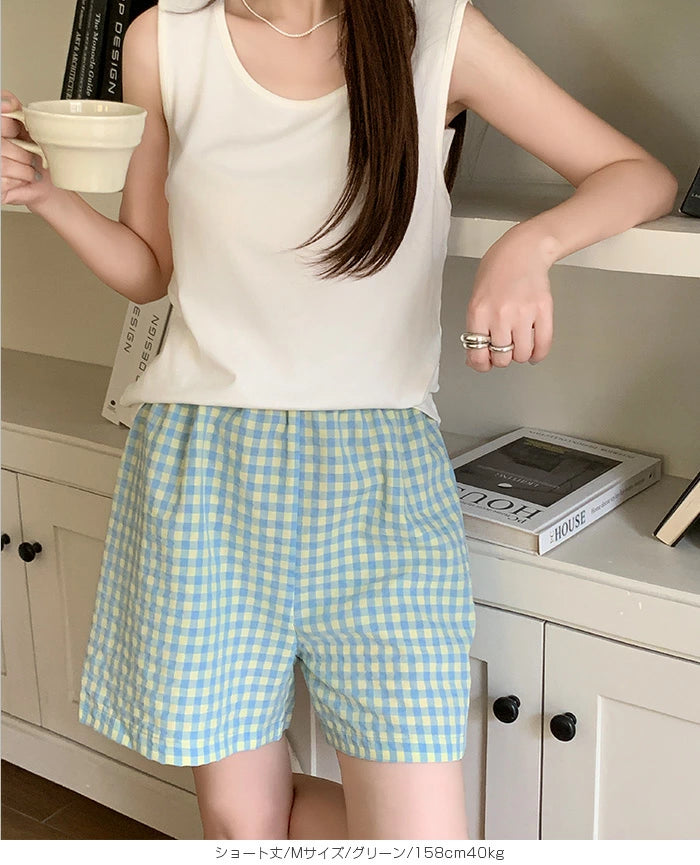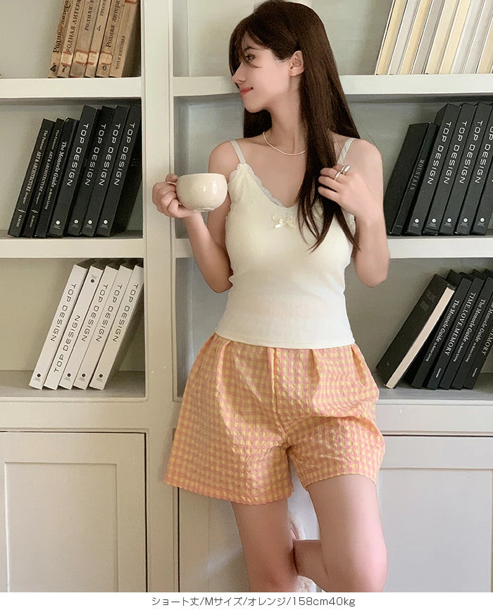 11color | 06type チェック柄ルームウェアパンツ - ショート丈/Mサイズ / パープル ...は取り寄せ中で入荷次第発送します。