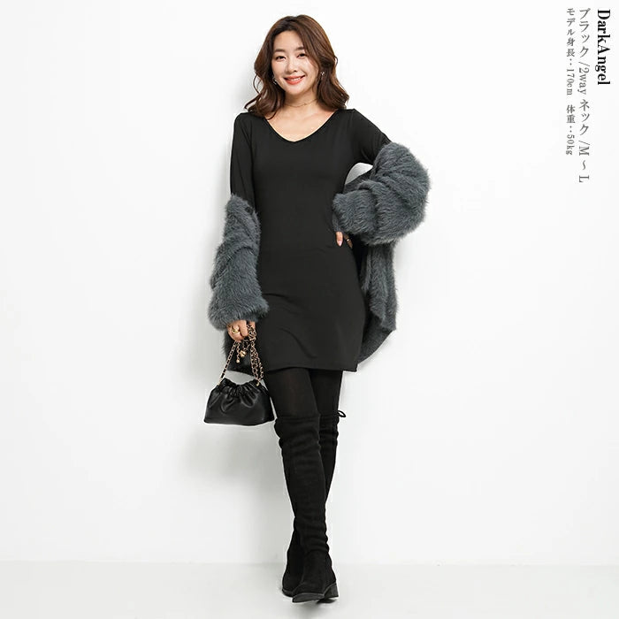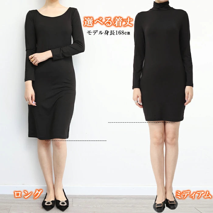 裏起毛インナーロング丈ワンピース - ブラック / 裏起毛/2wayネック/M〜L ...は取り寄せ中で入荷次第発送します。