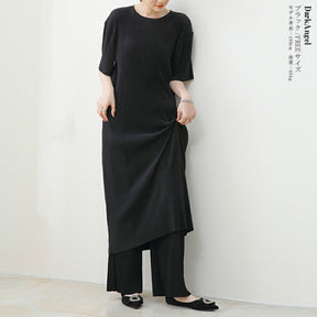 [関連ワード] ワンピース 半袖 レディース ワンピース ロング きれいめ スカート セットアップ カジュアル ワンピース tシャツ 楽ちん 体型カバー セルフカット 高発色 ネイビー グリーン ブラック グレー 【 プリーツロングワンピース 】ダークエンジェル