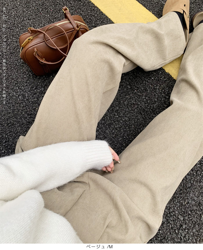 【 タック入りコーデュロイワイドパンツ 】 しなやかな落ち感と存在感のある太畝コーデュロイ素材が魅力のワイドパンツ。 ゆったりとしたシルエットながら、ウエストのタックで脚のラインを美しく演出。 シーズンムードを高めるコーデュロイ生地は柔らかく、 程よい厚みで秋冬にぴったり。 腰回りに程よくゆとりを持たせ、 ストレスフリーな穿き心地ながらも スタイルアップが叶う一本です。 《商品ポイント》 高見えする太畝コーデュロイ素材で季節感を演出 センタープレス風タックで脚長効果抜群 肌触りの良い柔らか素材で長時間の着用も快適 シンプルながらモード感漂う上品デザイン 《デザイン・シルエット》 程よくルーズなワイドストレートライン。 裾にかけて自然に落ちるドレープが美しく、 動くたびにエレガントな印象をプラス。 フロントにはタックを施し、立体感のあるシルエットで 体型をカバーしながらもきれい見えを実現します。 トップスイン・アウトどちらもバランス良く決まる万能ボトムです。 《コーディネート提案》 ・モノトーンのタートルネックと合わせて上品な冬コーデに。 ・スウェットやパーカーを合わせれば抜け感のあるストリートスタイルにも◎ ・ロングコートやショートブルゾンを合わせて 、シーズンムードを高めたスタイリングもおすすめ。 ・スニーカーはもちろん、ブーツ合わせでスタイルアップ効果も狙えます。 《サイズ・カラーバリエーション》 サイズ:M / L カラー:コーヒーブラウン / ブラック / ベージュ 《素材・機能性》 ・素材:ポリエステル100% ・透け感:なし ・伸縮性:なし ・厚み:普通 |