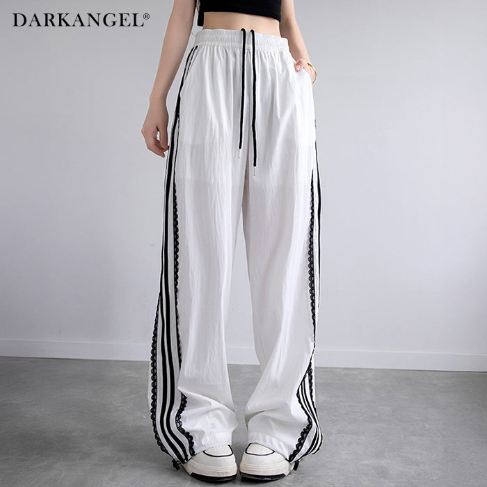 【商品名】 サイドのレースラインが目を惹く、甘辛バランスなトラックパンツ。 シャカシャカと軽やかな素材感で、春夏も涼しく快適に。 スタイルアップも叶う、旬のスポカジアイテムです。 《商品ポイント》 着心地軽やかなシャカシャカ素材を採用した、トレンド感満載のトラックパンツ。 サイドには繊細なレースとラインデザインを施し、スポーティーながらもガーリーなムードをプラス。 裾にはドロストコード付きでシルエットアレンジも自在。 ウエストゴム仕様で締め付け感がなく、ストレスフリーな履き心地。 脚長効果のある縦ラインでスタイルアップも叶います。 《デザイン・シルエット》 シャカ感のあるポリエステル素材でカジュアルに映える風合い サイドライン×レースで甘辛ミックスな印象に ワイドストレートシルエットでゆるっとリラクシー 裾はドロスト仕様でシルエット変化が可能 裏地なし、ホワイトは若干の透け感あり 《コーディネート提案》 シンプルなTシャツやクロップド丈トップスと合わせて韓国ストリート風に スポーティーなロゴTやキャミと合わせてY2Kライクな着こなしにも パーカーやブルゾンと合わせて、季節の変わり目の軽アウターコーデにもマッチ スニーカーや厚底シューズと好相性。タウンユースからちょっとしたお出かけにも◎ 《サイズ・カラーバリエーション》 S/M/L/XL カラー:ホワイト、ブラック 《素材・機能性》 素材:ポリエステル100% 透け感:あり(ペチコートやインナーの着用推奨) 伸縮性:なし 厚み:普通 |