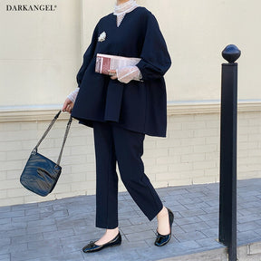 [関連ワード] セットアップ レディース フォーマル 春 ペプラム テーパードパンツ パンツスーツ セレモニー ママ 入学式 パール ペプラム 上下セット 体型カバー ネイビー ダークエンジェル だーくえんじぇる darkangel Dark Angel DARK ANGEL