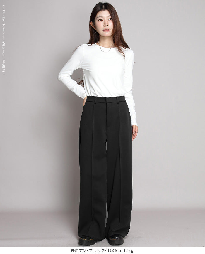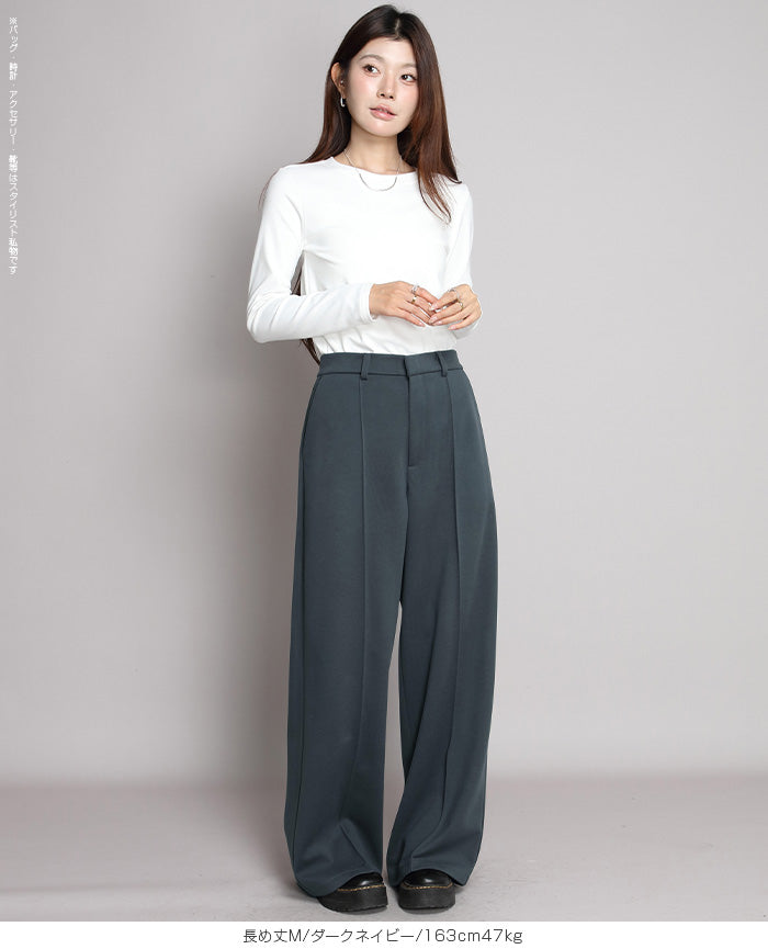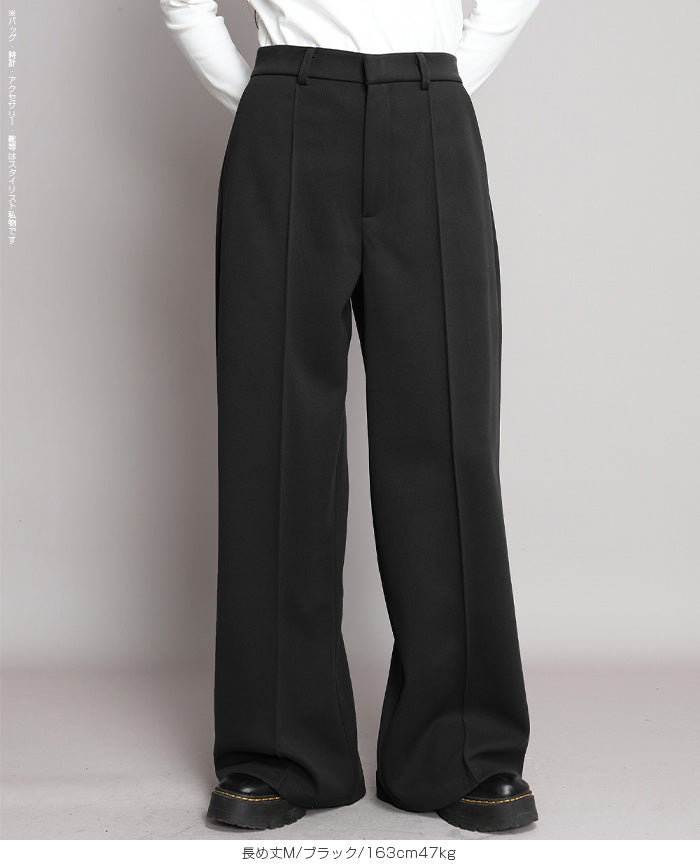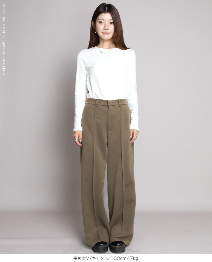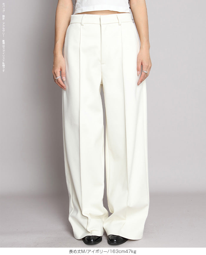 センターピンタック入りで縦ラインを強調し、スラッと見せる美脚設計。