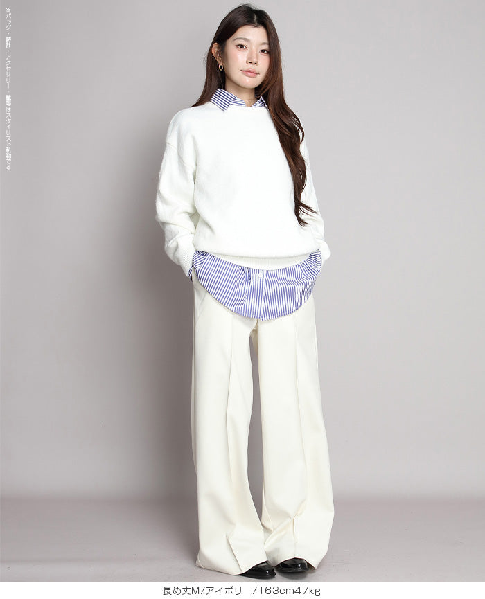 冬の定番ニット×ワイドパンツで、ほどよく抜け感のある大人カジュアルに。