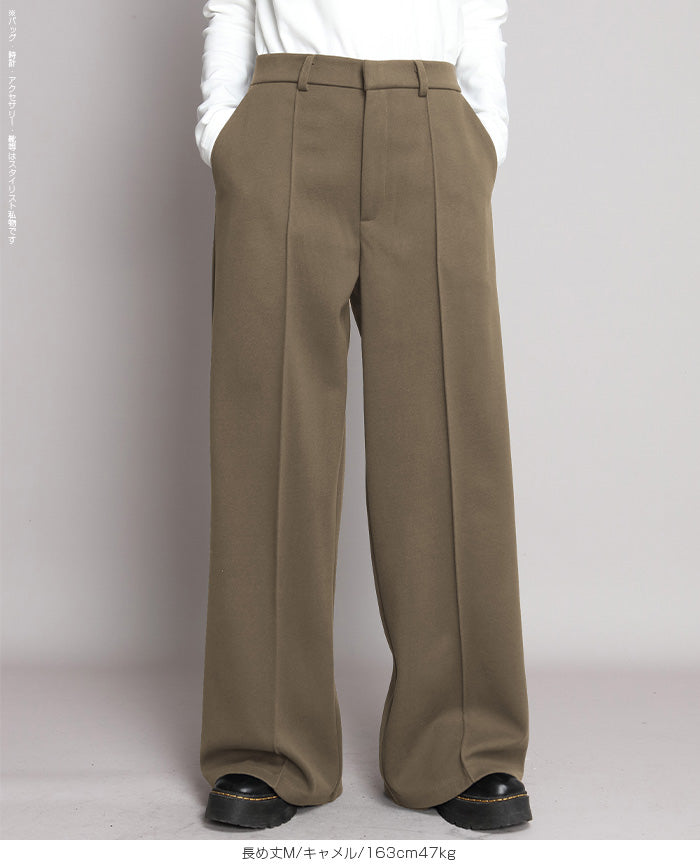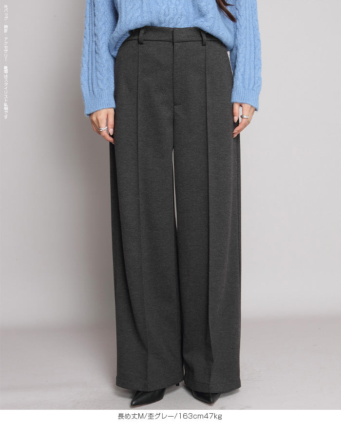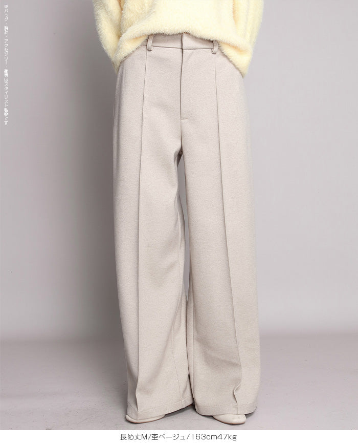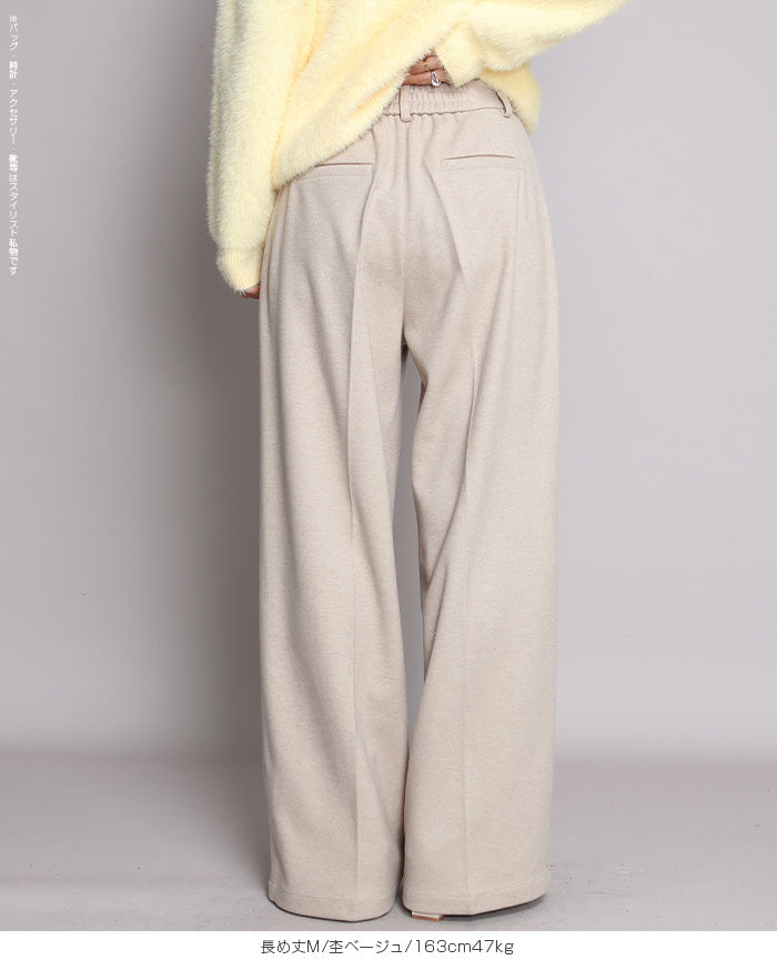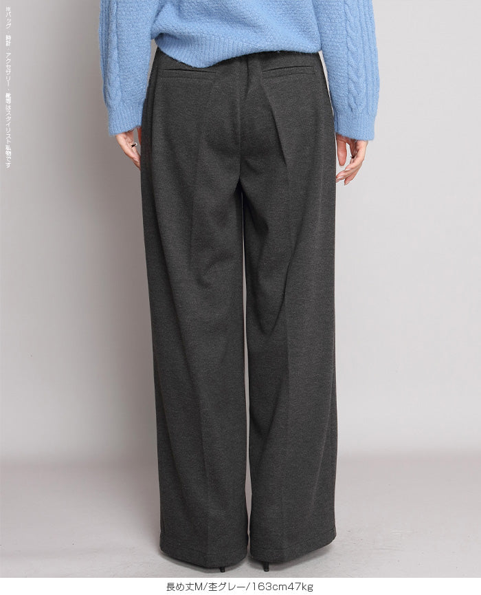 【 あったか起毛ピンタック入りワイドパンツ 】