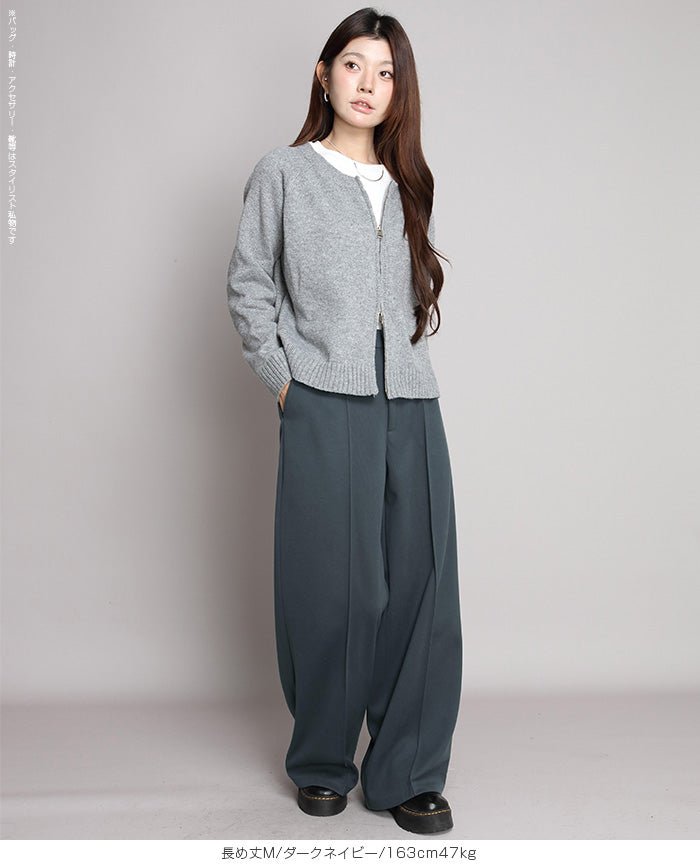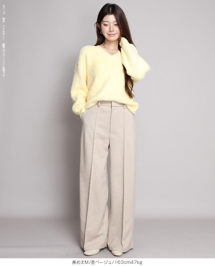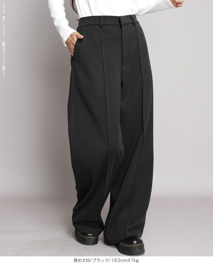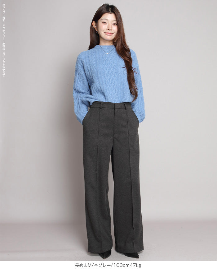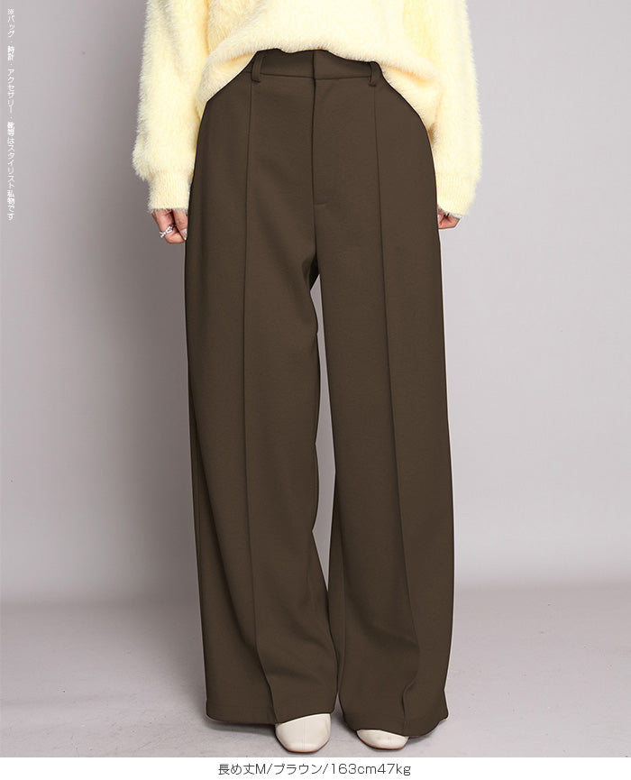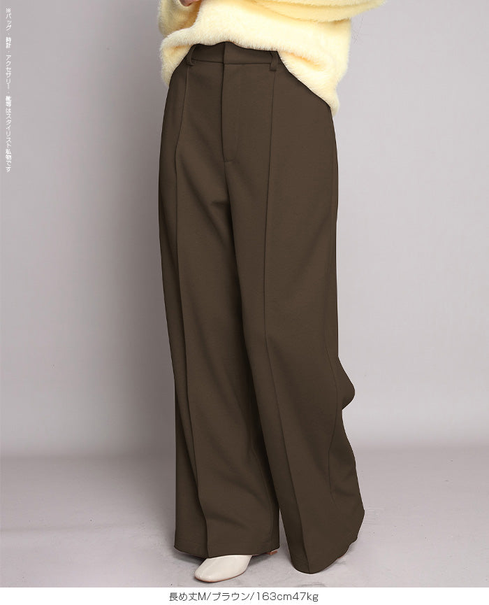 【 あったか起毛ピンタック入りワイドパンツ 】