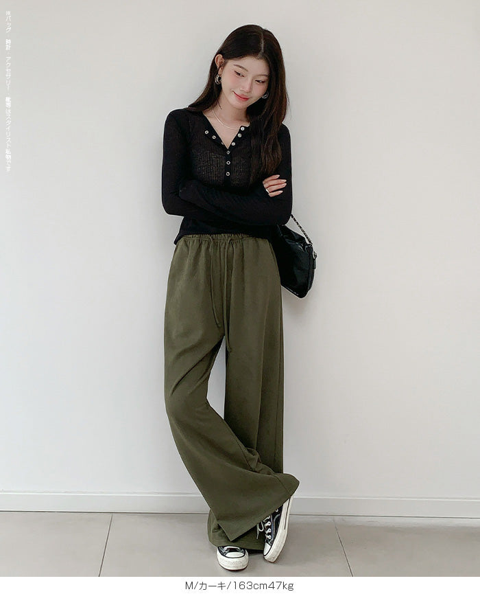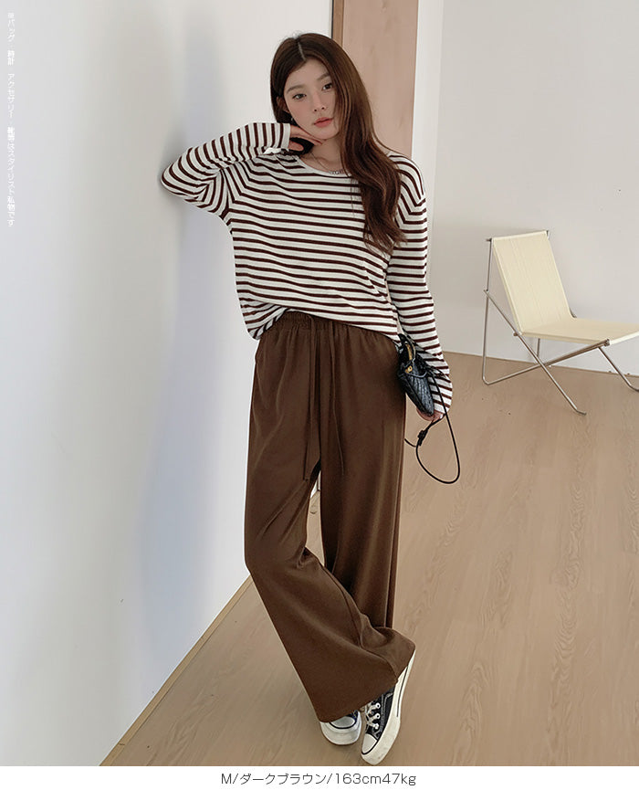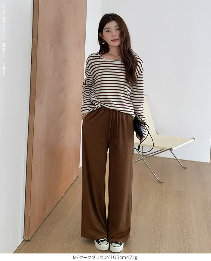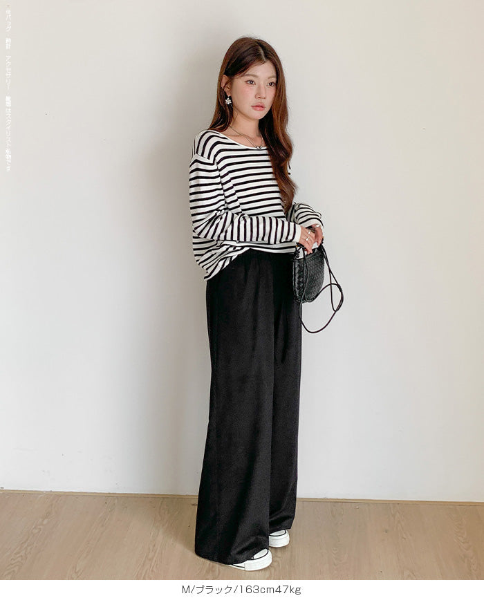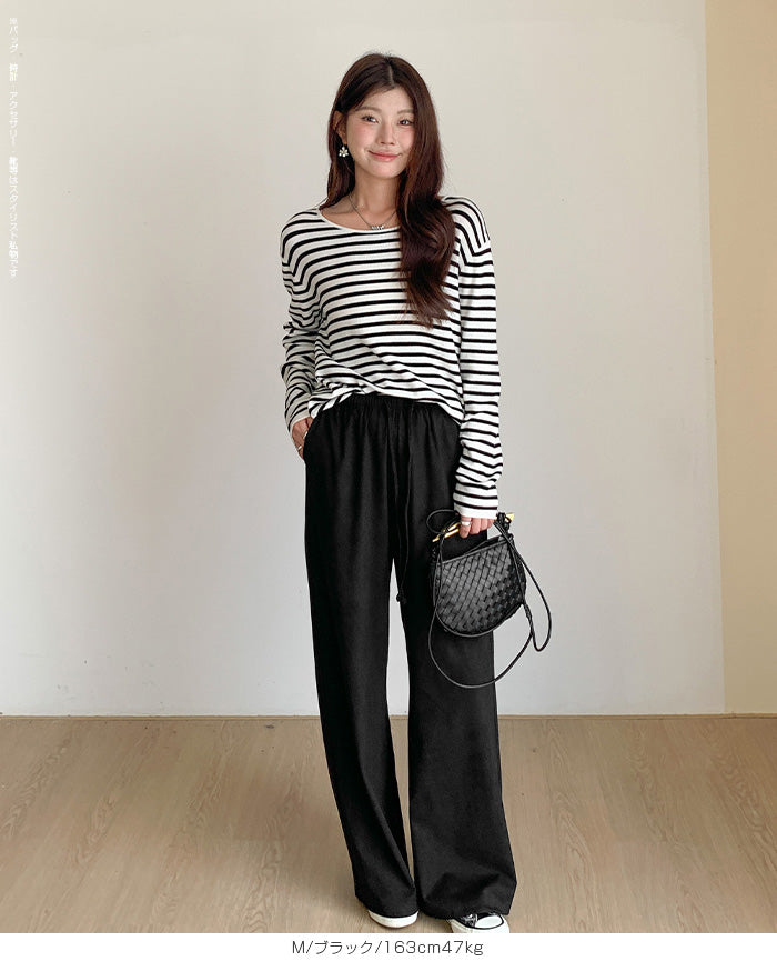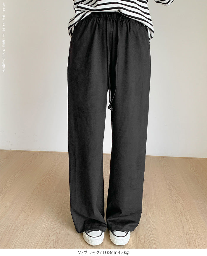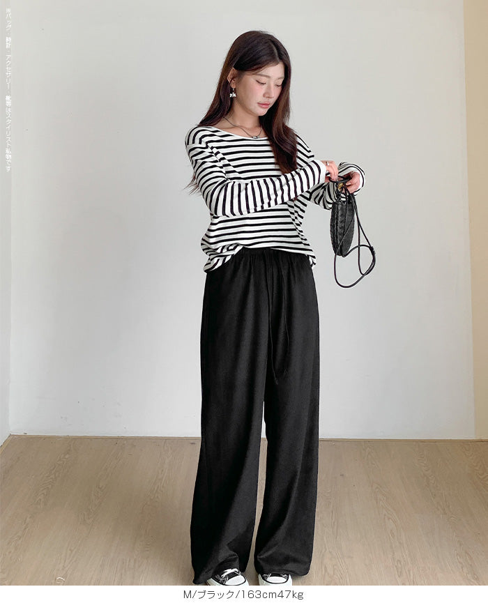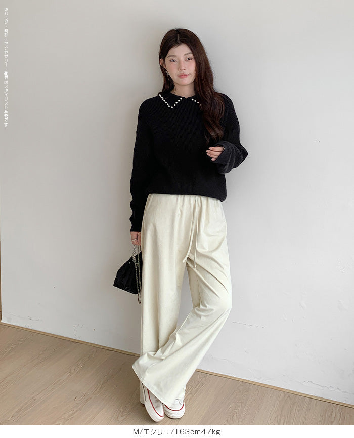 【秋冬のスタイリングに上品な抜け感をプラスする 、フェイクスエードワイドパンツ。 柔らかくしっとりとしたスエード調素材は、 高級感がありながらも軽やかで穿き心地ラクちん。 ウエストは総ゴム仕様でリラックス感があり、 便利なサイドポケット付き。 ワイドシルエットが体型をさりげなくカバーし、 美脚効果も期待できます。 カジュアルにもきれいめにも合わせやすく、 オンオフ問わずデイリーに活躍。 大人カジュアルを楽しみたい女性におすすめの一本です。 【素材感・着心地】 ポリエステル90%・ポリウレタン10%のフェイクスエード生地を使用。 リアルレザーのような高級感があり、 しっとりとなめらかな質感で大人っぽい落ち着いた風合いが魅力です 秋冬の装いに品良くマッチし、高見え効果も◎。 【シルエット・サイズ感】 ワイドなストレートシルエットで脚のラインを拾わず、 気になる体型もさりげなくカバーできます 旬のゆったり感がこなれた印象を与え 美脚&脚長効果でスタイルアップも叶う一本です 機能性: ウエストは総ゴム仕様で、 長時間の着用や屈んだ動作もストレスフリーな楽ちん履き心地 両サイドには便利なポケット付きで実用性も兼ね備え、デイリーに活躍します。 【着回し&コーデ提案】 高見えする素材感のおかげで、 合わせるアイテム次第でカジュアルからきれいめまで幅広い着回しが可能です。 カジュアルな着こなし:オーバーサイズのボリュームニットやパーカーなど、 ラフなトップスと合わせ、足元はスニーカーでカジュアルダウン。 きれいめな着こなし:短めの丈のトップスや、 フィット感のあるリブニットなどをタックインすると、 脚長効果が引き立ちます。 足元にヒールやショートブーツを合わせれば、 オフィスにも対応できる大人きれいめスタイルが完成します。 |