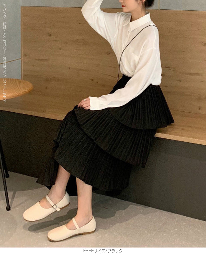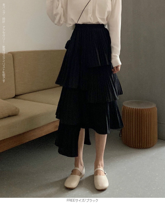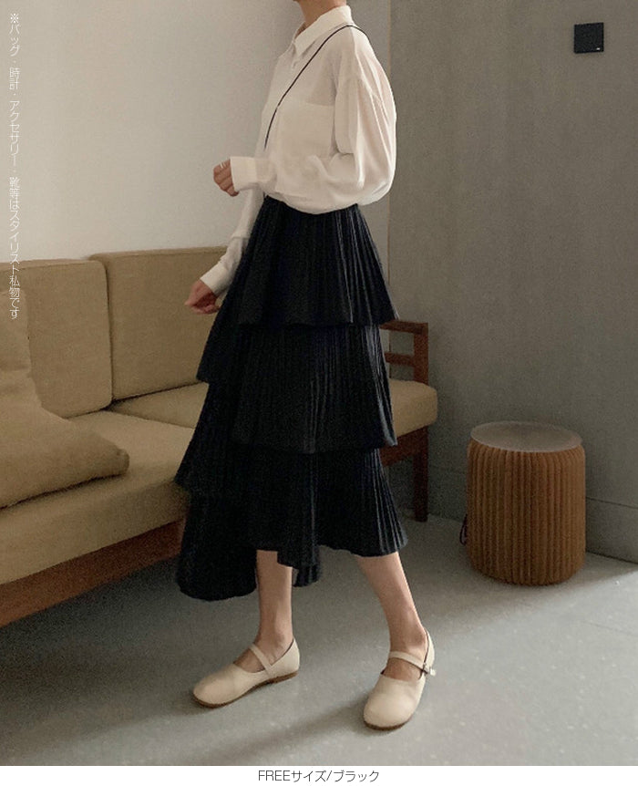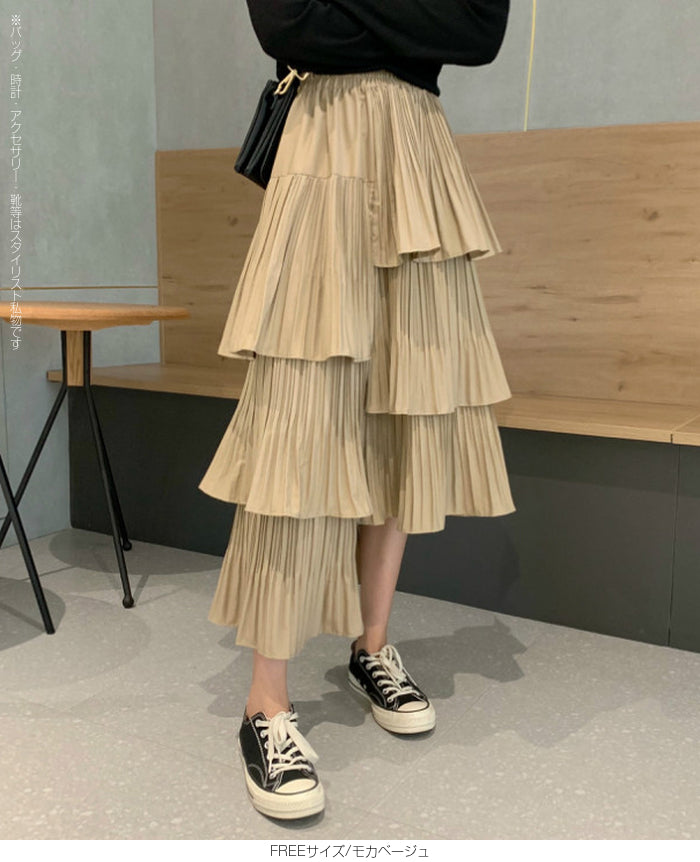 段プリーツティアードスカート