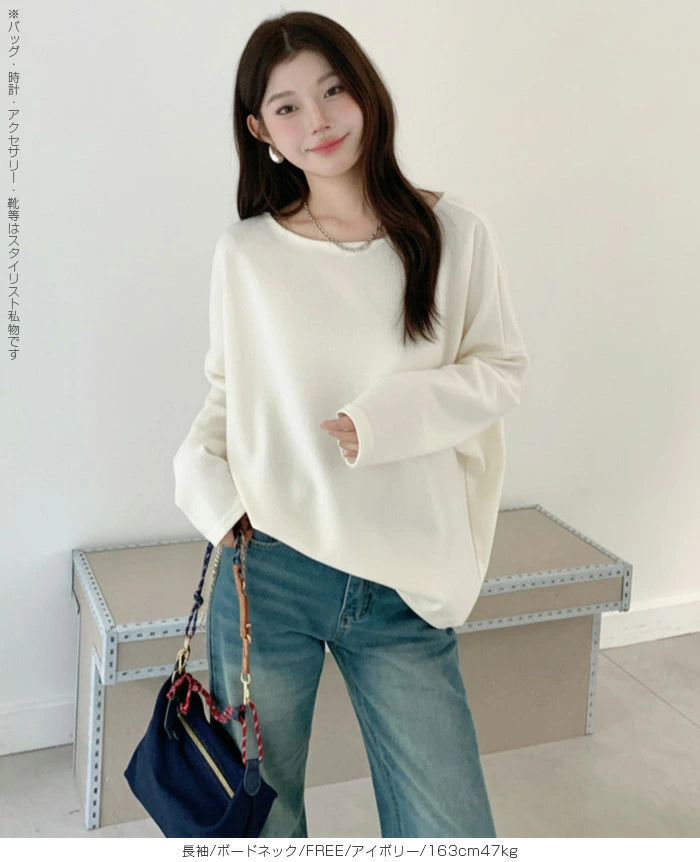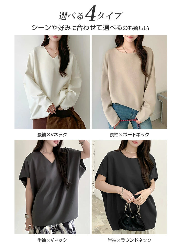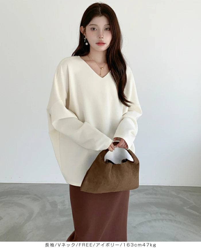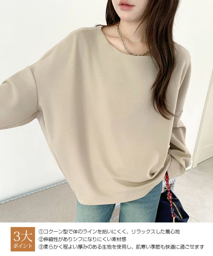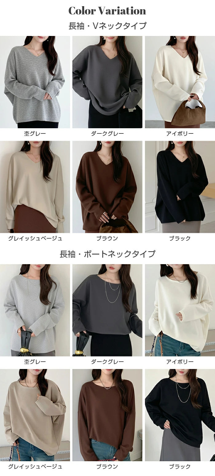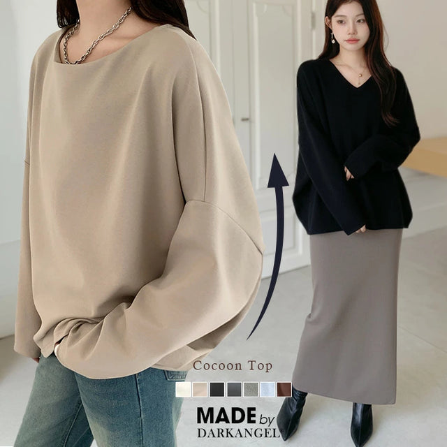 シンプルながらもトレンド感たっぷりの コクーントップス長袖タイプ が登場しました。 ゆったりとしたシルエットと落ち感のあるドルマンスリーブが、 気になる二の腕やウエスト周りを自然にカバーし、 着るだけでこなれ感を演出。 選べる 2ネックデザイン で、 好みやシーンに合わせて着こなしを楽しめます。 柔らかく伸縮性のあるカットソー素材で、 動きやすくデイリー使いに最適。 きれいめにもカジュアルにも着回せる万能トップスは、 オンオフ問わず幅広く活躍してくれます。 《商品ポイント》 長袖追加タイプで秋冬にぴったり Vネック&ボートネックの2デザインから選べる ゆったり コクーンシルエットで体型カバー ドルマンスリーブで抜け感のあるおしゃれ見え ベーシックカラー展開で着回し力抜群 《デザイン・シルエット》 ゆるっとしたドルマンスリーブで華奢見え効果 裾に向かってやや丸みを帯びたコクーンライン ボリューム感がありながらも落ち感素材でスッキリ シンプル無地デザインで大人カジュアルに最適 《コーディネート提案》 デニムと合わせてカジュアルに タイトスカートと合わせればきれいめオフィスコーデ ワイドパンツと合わせてリラックススタイルに ショートネックレスやロングアクセで首元の印象チェンジも◎ |