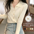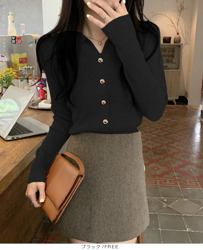 飾りボタン 襟付きリブニット - ブラック ...は取り寄せ中で入荷次第発送します。