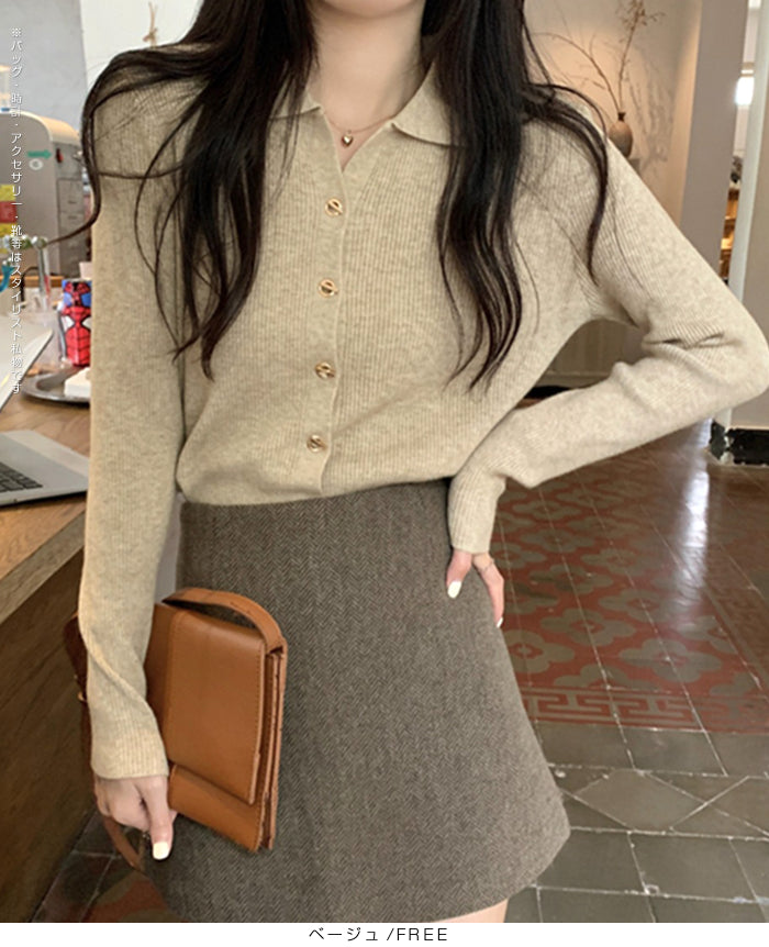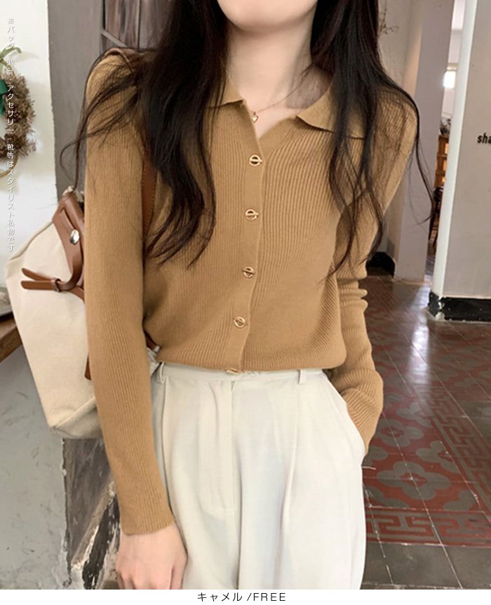 【飾りボタン 襟付きリブニット】 上品さとカジュアル感を兼ね備えたリブニットカーディガン。 細かいリブ編みが縦のラインを強調し、 すっきりとしたシルエットを演出します。 程よくコンパクトな丈感で、 インでもアウトでもバランス良く着こなせるのが魅力。 シャツライクな小さめの襟が 女性らしいきちんと感をプラスし、 フロントにはハトメ風ボタンホールに T字バーを通すユニークな仕様を採用。 軽やかなニット素材は伸縮性があり、 長時間の着用でも快適。 デニムと合わせたカジュアルスタイルはもちろん、 スカートやスラックスと組み合わせてきれいめコーデにも対応。 カラーはベーシックからニュアンスカラーまで揃っており、 シーンや気分に合わせた着こなしが楽しめます。 《商品ポイント》 ・リブ編み素材で縦ラインを強調しスタイルアップ効果 ・ハトメ風ホールにT字バーを通すボタンが華やかなアクセント ・小ぶりのシャツライクな襟で上品さときちんと感を演出 ・シンプルながら個性的なディテールで差がつく一枚 《デザイン・シルエット》 ・程よくフィットするリブ編みで女性らしいシルエット ・コンパクト丈でイン・アウトどちらの着こなしも可能 ・フロントのゴールドメタルボタンが華やぎをプラス ・襟付きデザインで大人っぽい印象 《コーディネート提案》 ・デニムと合わせてカジュアルに着こなすデイリースタイル ・スカートと合わせてフェミニンかつきれいめコーデに ・ワイドパンツと合わせてトレンド感のあるリラックスコーデ ・オフィスにも使えるきちんと感のあるスタイリングに 《サイズ・カラーバリエーション》 サイズ:FREE カラー:ブラック、アイボリー、ベージュ、キャメル、カーキ 《素材・機能性》 ・素材:コットン65%、ポリエステル35% ・透け感:なし(淡色はややあり) ・伸縮性:あり ・厚み:中肉で春秋は1枚で、冬はアウターの下に着てもごわつかない |