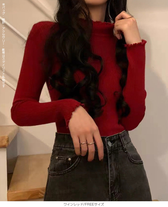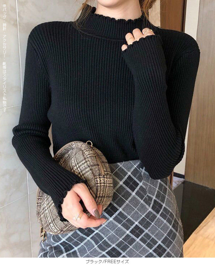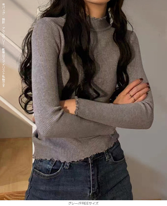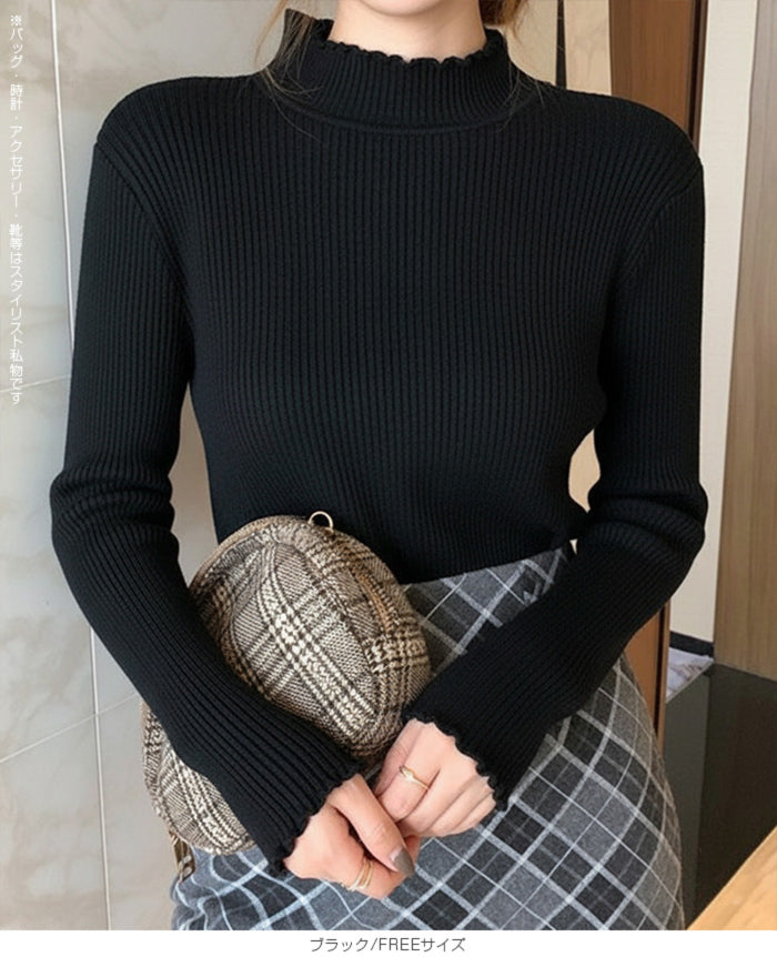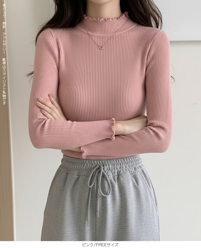 メロウフリルリブニット
