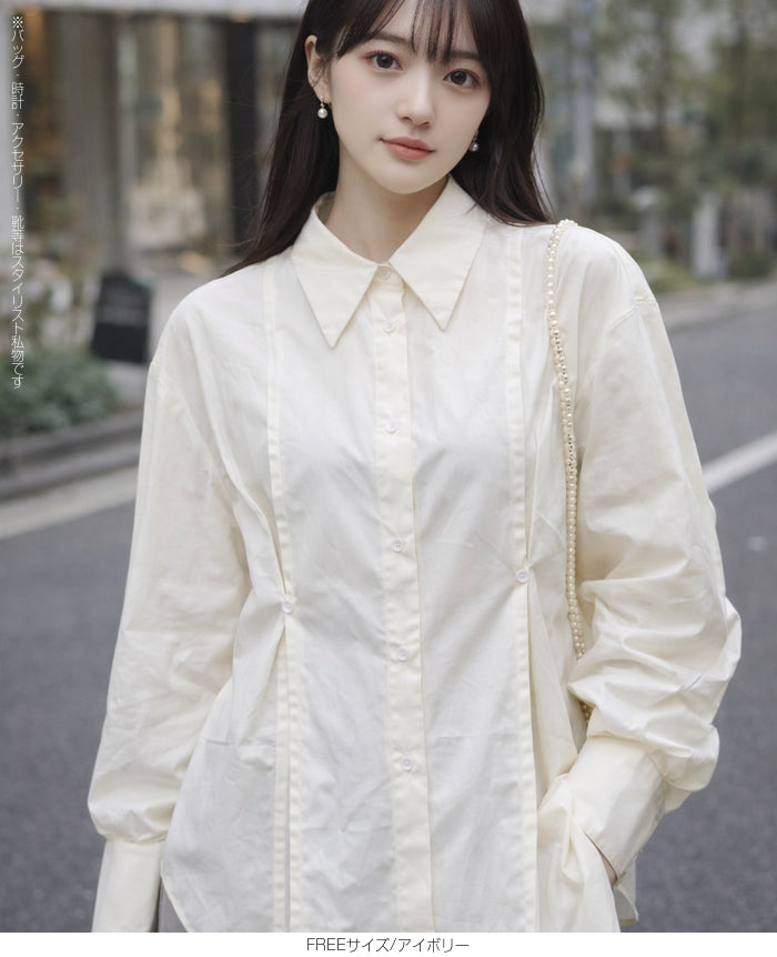 ピンタックデザインシャツブラウス