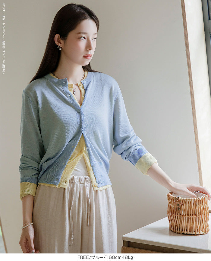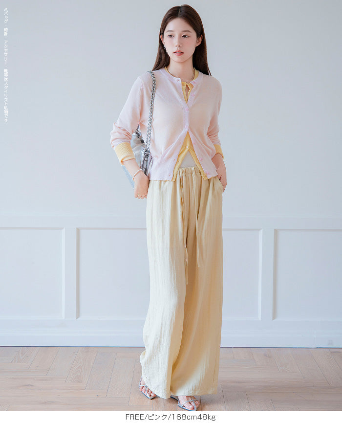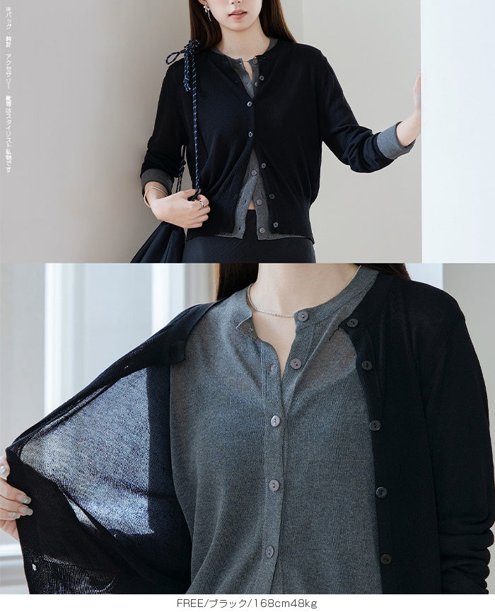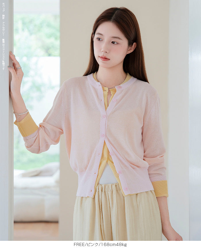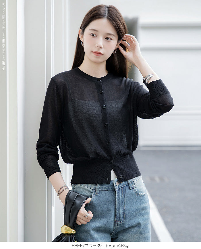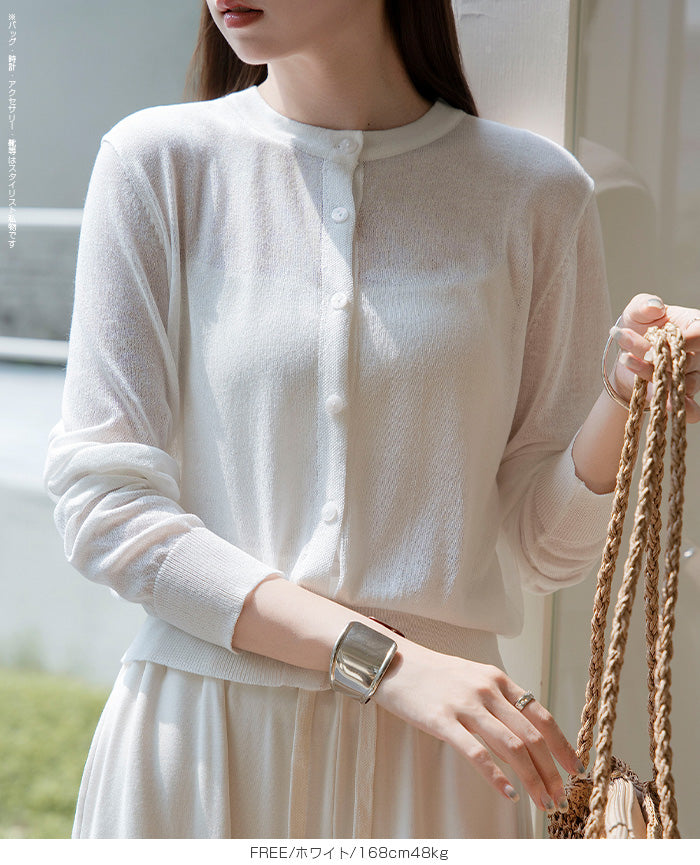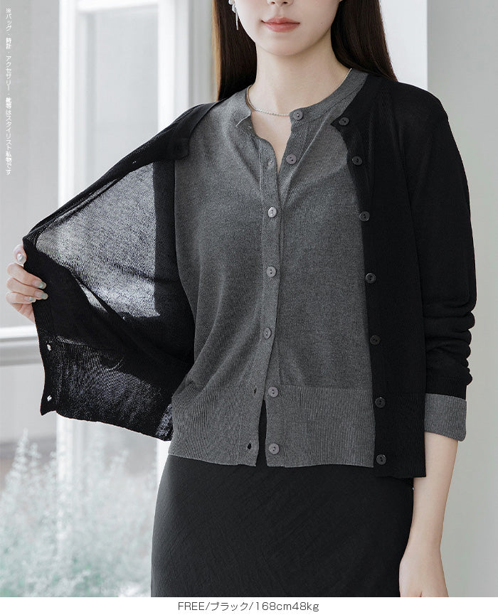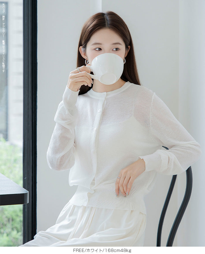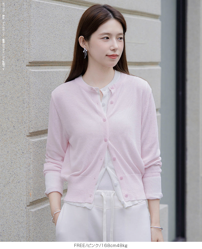「冷房が寒いけど、重ねると暑い…」 そんな季節の悩みを、1枚でスマートに解決。 ほんのり透けるシアー素材が、 見た目にも涼しげで抜け感を演出。 着た瞬間に感じるさらっとした肌ざわりと軽やかさで、 暑い日でも快適に着用できます。 ショート丈設計だから、ワンピースやハイウエストボトムとも相性抜群。 羽織るだけでスタイルバランスが整い、自然と脚長見えも叶います。 さらに洗濯機で洗えるウォッシャブル仕様で、 デイリーに気兼ねなく使えるのも嬉しいポイント。 きれいめにもカジュアルにも馴染む、 “ちょうどいい上品さ”を持った大人のためのサマーカーディガンです。 【素材感・着心地】 レーヨン89%・ナイロン11%のブレンド素材を使用。 なめらかでやさしい肌ざわりのレーヨンに、 ナイロンの軽さと強度をプラスすることで、 さらっとしたドライタッチと軽やかな着心地を実現。 肌離れがよく、汗ばむ季節でもベタつきにくく快適。 ほんのりひんやりとした清涼感があり、夏の羽織りとして最適です。 透け感のあるシアー素材で、インナーとのレイヤードも楽しめます。 洗濯機使用可(ネット使用推奨)、タンブル乾燥不可 【シルエット・サイズ感】 体に程よくフィットするベーシックなサイズ感。 コンパクトなショート丈でウエスト位置を高く見せ、 スタイルアップ効果も期待できます。 ボタンを閉じてトップス風に、 開けて軽く羽織るスタイルにも対応。 すっきり見えながらも窮屈感のない、 大人女性にちょうどいいシルエットです。 【着回し&コーデ提案】 ・ワンピースに羽織って上品フェミニンスタイル ・タンクトップ+デニムで抜け感カジュアル ・オフィスではブラウスの上に羽織ってきちんと感をプラス ・冷房対策としてバッグに入れて持ち運びも◎ ホワイト・ブラック・グレー・ブルー・ピンク・イエローなど 豊富なカラーバリエーションで、色違いで揃えるのもおすすめ。 春から夏、初秋まで長く活躍する万能アイテムです。 |