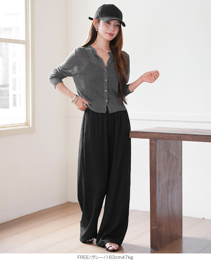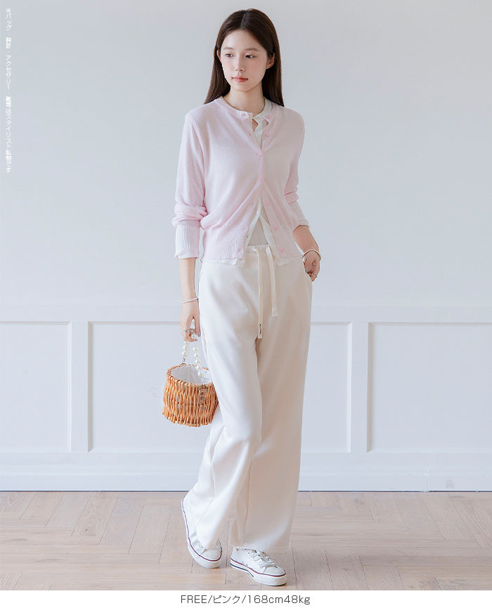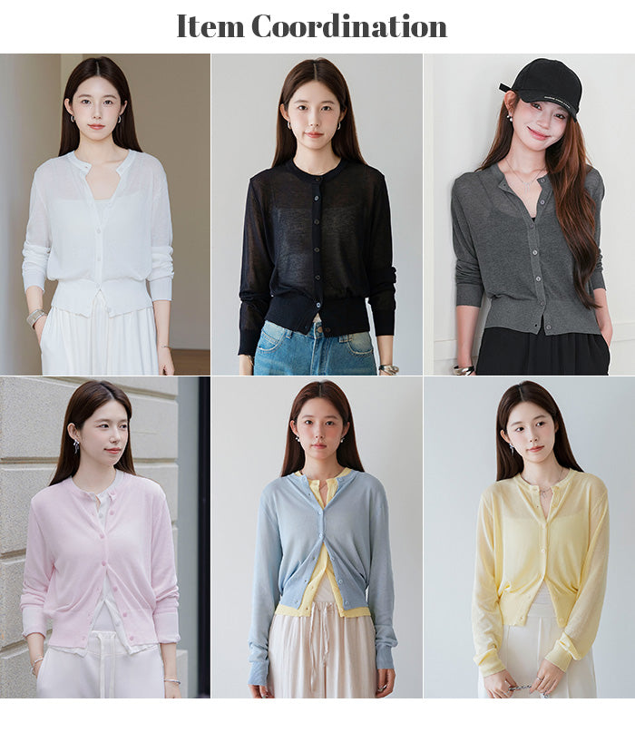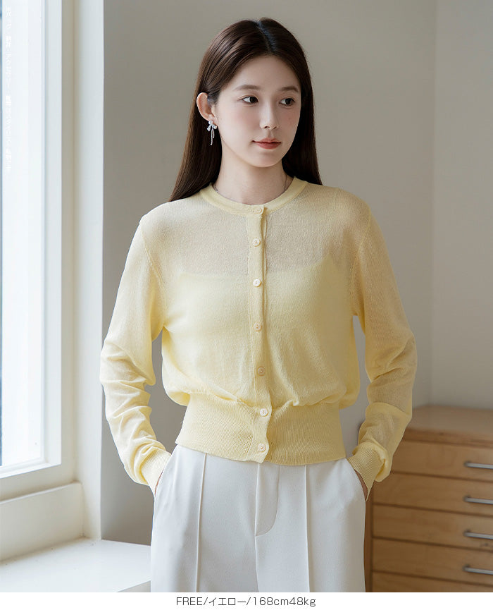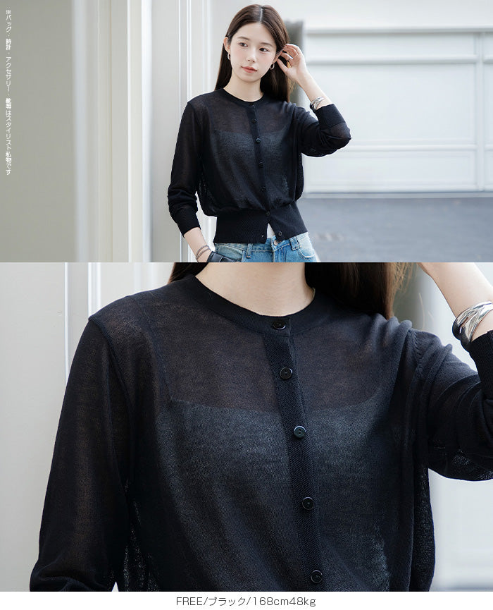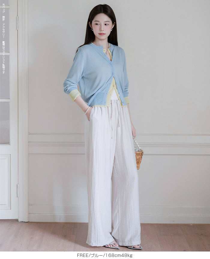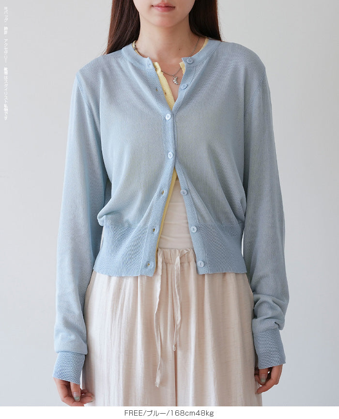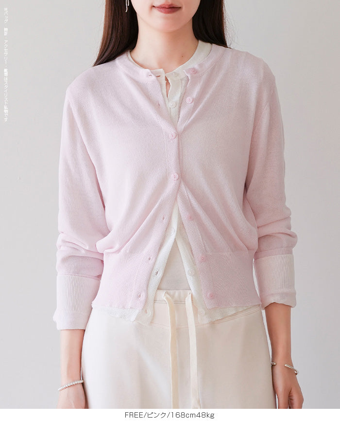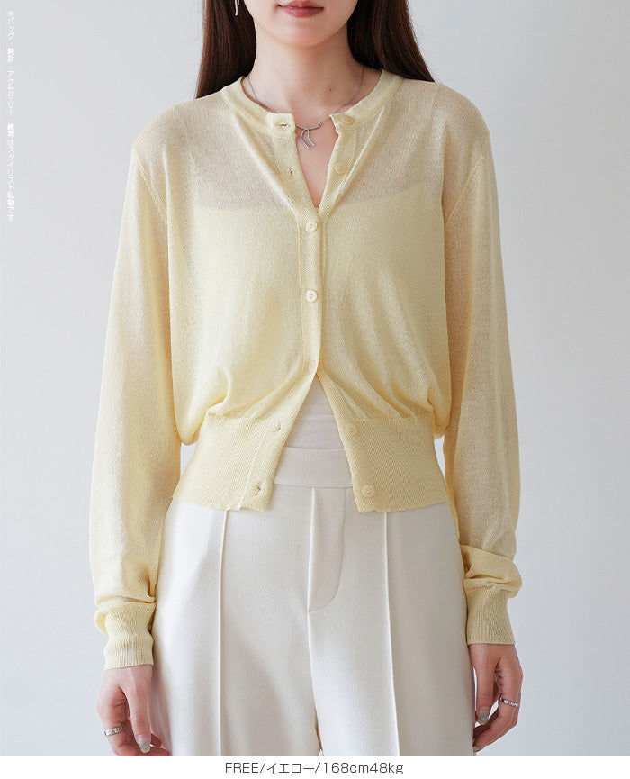「冷房が寒いけど、重ねると暑い…」 そんな季節の悩みを、1枚でスマートに解決。 ほんのり透けるシアー素材が、 見た目にも涼しげで抜け感を演出。 着た瞬間に感じるさらっとした肌ざわりと軽やかさで、 暑い日でも快適に着用できます。 ショート丈設計だから、ワンピースやハイウエストボトムとも相性抜群。 羽織るだけでスタイルバランスが整い、自然と脚長見えも叶います。 さらに洗濯機で洗えるウォッシャブル仕様で、 デイリーに気兼ねなく使えるのも嬉しいポイント。 きれいめにもカジュアルにも馴染む、 “ちょうどいい上品さ”を持った大人のためのサマーカーディガンです。 【素材感・着心地】 レーヨン89%・ナイロン11%のブレンド素材を使用。 なめらかでやさしい肌ざわりのレーヨンに、 ナイロンの軽さと強度をプラスすることで、 さらっとしたドライタッチと軽やかな着心地を実現。 肌離れがよく、汗ばむ季節でもベタつきにくく快適。 ほんのりひんやりとした清涼感があり、夏の羽織りとして最適です。 透け感のあるシアー素材で、インナーとのレイヤードも楽しめます。 洗濯機使用可(ネット使用推奨)、タンブル乾燥不可 【シルエット・サイズ感】 体に程よくフィットするベーシックなサイズ感。 コンパクトなショート丈でウエスト位置を高く見せ、 スタイルアップ効果も期待できます。 ボタンを閉じてトップス風に、 開けて軽く羽織るスタイルにも対応。 すっきり見えながらも窮屈感のない、 大人女性にちょうどいいシルエットです。 【着回し&コーデ提案】 ・ワンピースに羽織って上品フェミニンスタイル ・タンクトップ+デニムで抜け感カジュアル ・オフィスではブラウスの上に羽織ってきちんと感をプラス ・冷房対策としてバッグに入れて持ち運びも◎ ホワイト・ブラック・グレー・ブルー・ピンク・イエローなど 豊富なカラーバリエーションで、色違いで揃えるのもおすすめ。 春から夏、初秋まで長く活躍する万能アイテムです。 |
