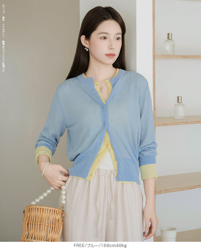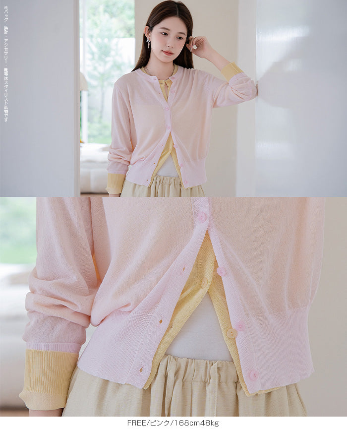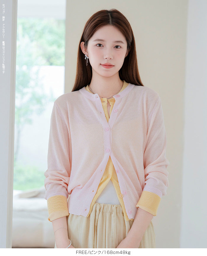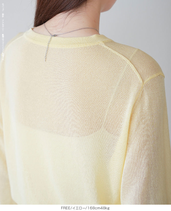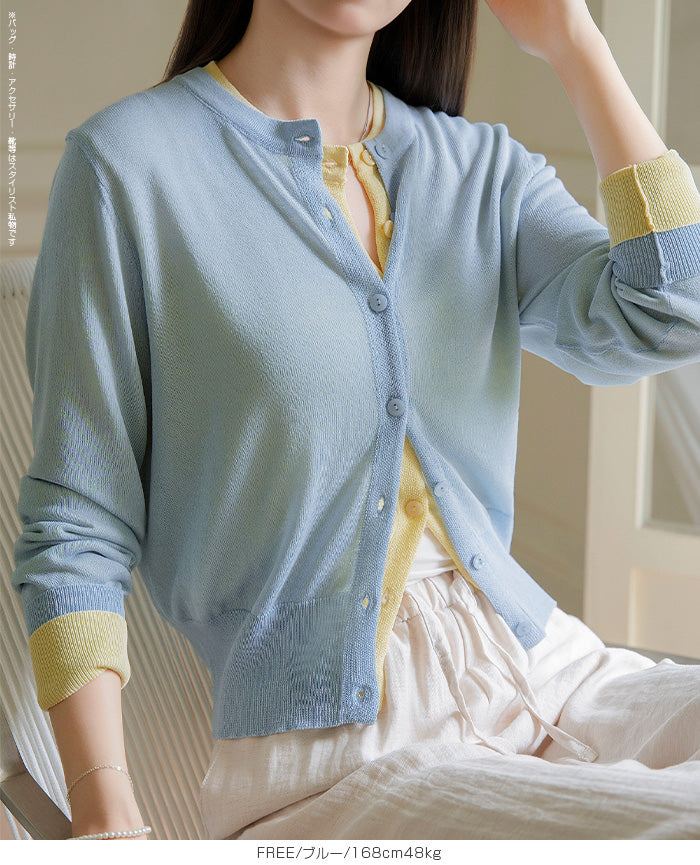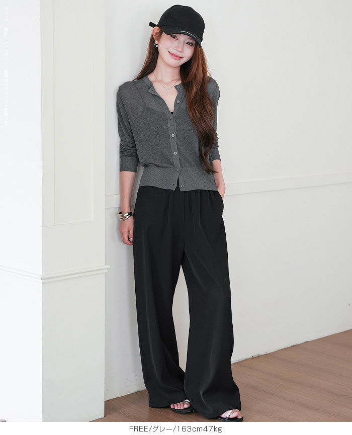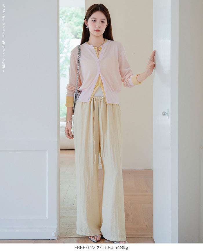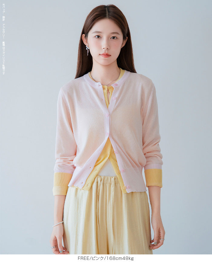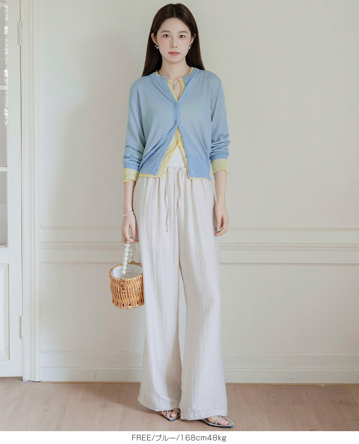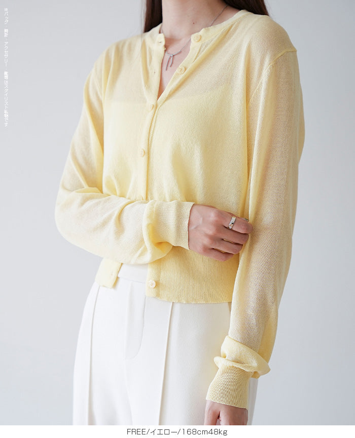 「冷房が寒いけど、重ねると暑い…」 そんな季節の悩みを、1枚でスマートに解決。 ほんのり透けるシアー素材が、 見た目にも涼しげで抜け感を演出。 着た瞬間に感じるさらっとした肌ざわりと軽やかさで、 暑い日でも快適に着用できます。 ショート丈設計だから、ワンピースやハイウエストボトムとも相性抜群。 羽織るだけでスタイルバランスが整い、自然と脚長見えも叶います。 さらに洗濯機で洗えるウォッシャブル仕様で、 デイリーに気兼ねなく使えるのも嬉しいポイント。 きれいめにもカジュアルにも馴染む、 “ちょうどいい上品さ”を持った大人のためのサマーカーディガンです。 【素材感・着心地】 レーヨン89%・ナイロン11%のブレンド素材を使用。 なめらかでやさしい肌ざわりのレーヨンに、 ナイロンの軽さと強度をプラスすることで、 さらっとしたドライタッチと軽やかな着心地を実現。 肌離れがよく、汗ばむ季節でもベタつきにくく快適。 ほんのりひんやりとした清涼感があり、夏の羽織りとして最適です。 透け感のあるシアー素材で、インナーとのレイヤードも楽しめます。 洗濯機使用可(ネット使用推奨)、タンブル乾燥不可 【シルエット・サイズ感】 体に程よくフィットするベーシックなサイズ感。 コンパクトなショート丈でウエスト位置を高く見せ、 スタイルアップ効果も期待できます。 ボタンを閉じてトップス風に、 開けて軽く羽織るスタイルにも対応。 すっきり見えながらも窮屈感のない、 大人女性にちょうどいいシルエットです。 【着回し&コーデ提案】 ・ワンピースに羽織って上品フェミニンスタイル ・タンクトップ+デニムで抜け感カジュアル ・オフィスではブラウスの上に羽織ってきちんと感をプラス ・冷房対策としてバッグに入れて持ち運びも◎ ホワイト・ブラック・グレー・ブルー・ピンク・イエローなど 豊富なカラーバリエーションで、色違いで揃えるのもおすすめ。 春から夏、初秋まで長く活躍する万能アイテムです。 |