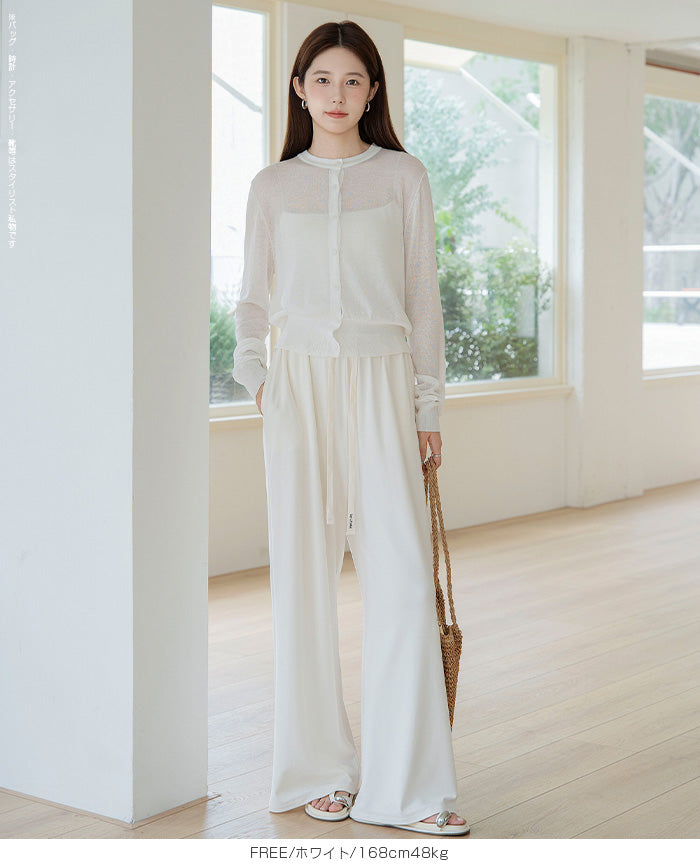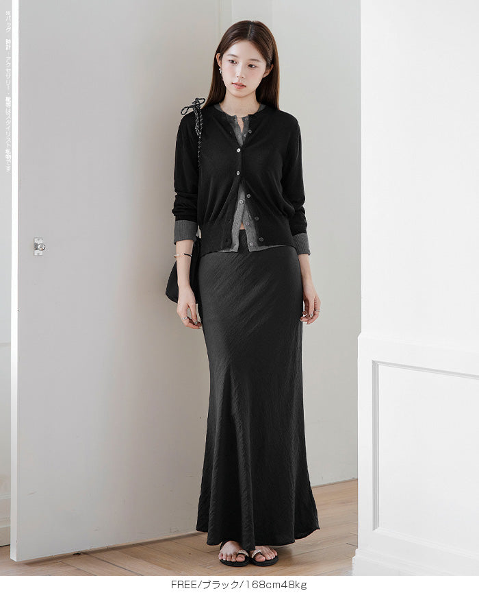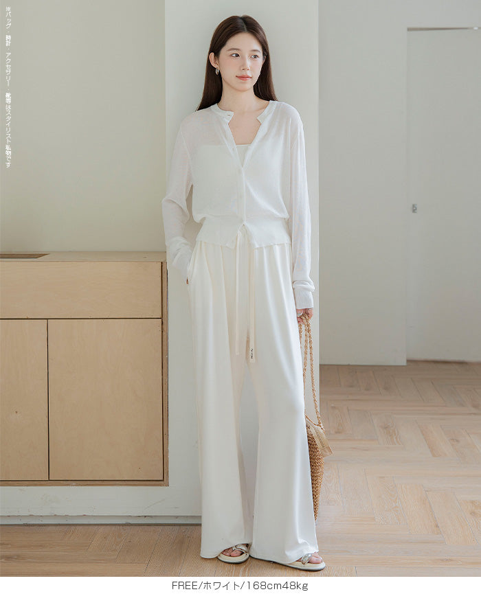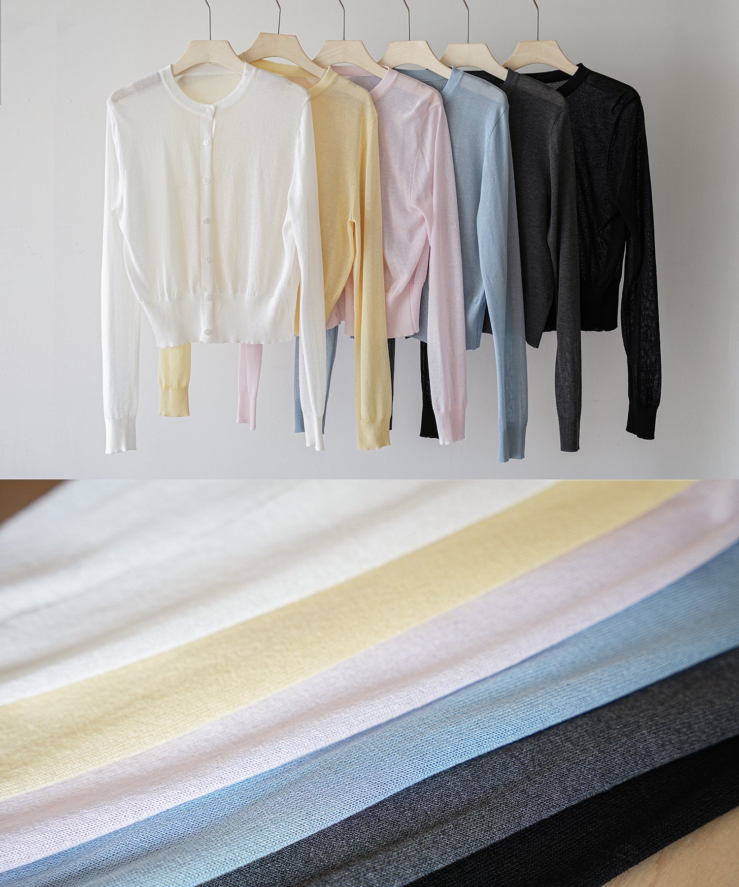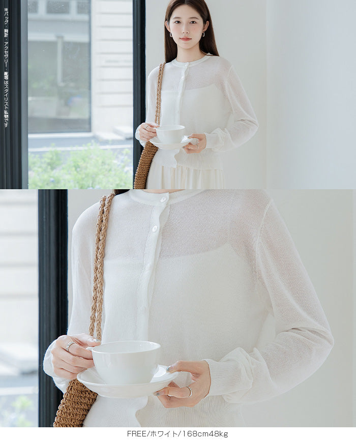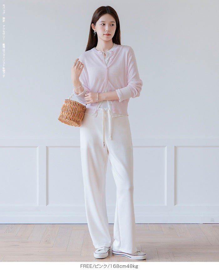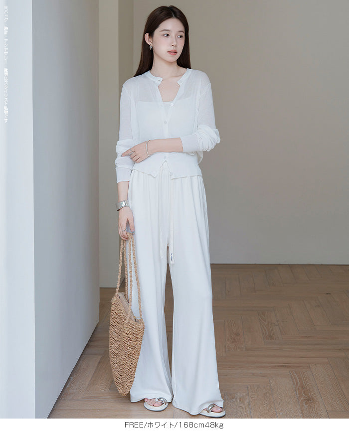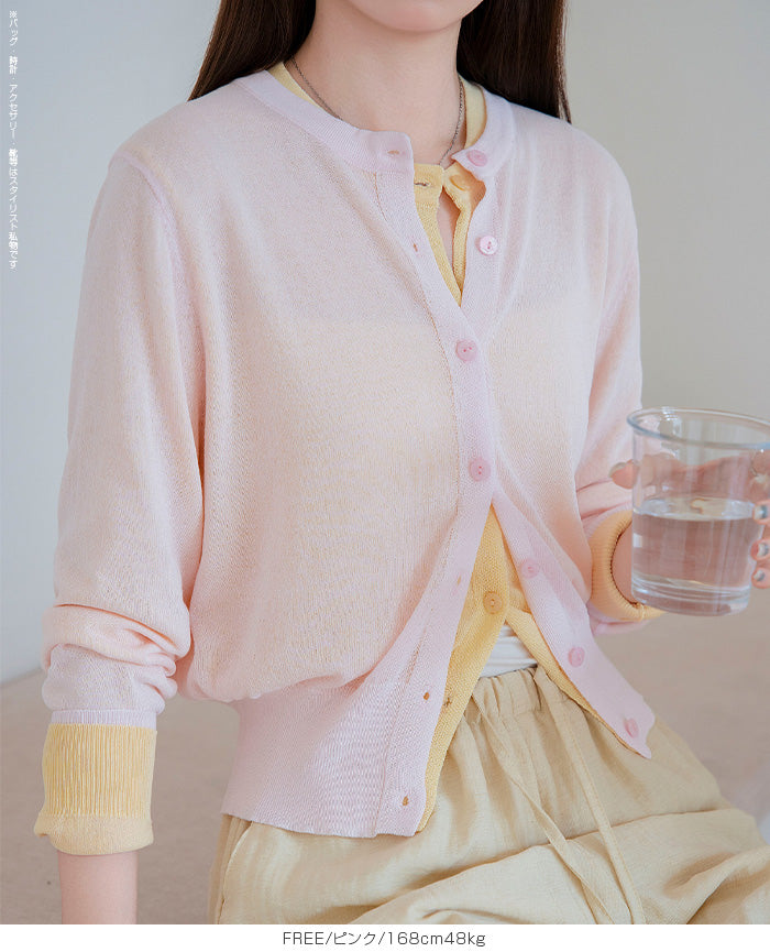 「冷房が寒いけど、重ねると暑い…」 そんな季節の悩みを、1枚でスマートに解決。 ほんのり透けるシアー素材が、 見た目にも涼しげで抜け感を演出。 着た瞬間に感じるさらっとした肌ざわりと軽やかさで、 暑い日でも快適に着用できます。 ショート丈設計だから、ワンピースやハイウエストボトムとも相性抜群。 羽織るだけでスタイルバランスが整い、自然と脚長見えも叶います。 さらに洗濯機で洗えるウォッシャブル仕様で、 デイリーに気兼ねなく使えるのも嬉しいポイント。 きれいめにもカジュアルにも馴染む、 “ちょうどいい上品さ”を持った大人のためのサマーカーディガンです。 【素材感・着心地】 レーヨン89%・ナイロン11%のブレンド素材を使用。 なめらかでやさしい肌ざわりのレーヨンに、 ナイロンの軽さと強度をプラスすることで、 さらっとしたドライタッチと軽やかな着心地を実現。 肌離れがよく、汗ばむ季節でもベタつきにくく快適。 ほんのりひんやりとした清涼感があり、夏の羽織りとして最適です。 透け感のあるシアー素材で、インナーとのレイヤードも楽しめます。 洗濯機使用可(ネット使用推奨)、タンブル乾燥不可 【シルエット・サイズ感】 体に程よくフィットするベーシックなサイズ感。 コンパクトなショート丈でウエスト位置を高く見せ、 スタイルアップ効果も期待できます。 ボタンを閉じてトップス風に、 開けて軽く羽織るスタイルにも対応。 すっきり見えながらも窮屈感のない、 大人女性にちょうどいいシルエットです。 【着回し&コーデ提案】 ・ワンピースに羽織って上品フェミニンスタイル ・タンクトップ+デニムで抜け感カジュアル ・オフィスではブラウスの上に羽織ってきちんと感をプラス ・冷房対策としてバッグに入れて持ち運びも◎ ホワイト・ブラック・グレー・ブルー・ピンク・イエローなど 豊富なカラーバリエーションで、色違いで揃えるのもおすすめ。 春から夏、初秋まで長く活躍する万能アイテムです。 |