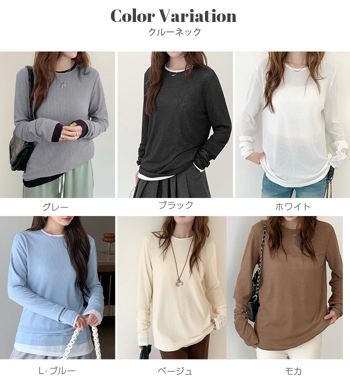トレンドのレイヤードネック×カットアウトで着映えるタイプと、 どんなコーデにも馴染むクルーネックの2タイプから選べる長袖リブロンT。 薄手のシアー素材が軽やかで、 上からジャケットやカーデを重ねてももたつかないのが魅力。 レイヤードネックタイプはラウンドヘムが腰回りをさりげなくカバー。 クルーネックタイプは長めの身丈で、クシュっとこなれ感のある着こなしに。 タックイン・アウトどちらもサマになります。 デニムでカジュアルに、スラックスできれいめに、 ワンピのインナーにも。 ロングシーズン活躍する無地トップスです。 《商品ポイント》 選べる2TYPE:レイヤードネック(カットアウト入り)/クルーネック 薄手リブシアー:軽くドライな着心地、重ね着しやすい 伸縮性◎:ストレスフリーでデイリー使いに最適 洗えて簡単お手入れ:扱いやすいデイリー素材 《デザイン・シルエット》 レイヤードネックタイプ 二重見えの襟元+さりげないカットアウトで首元に抜け感 アクセサリーが映える“着映えディテール” クルーネックタイプ すっきりクルーネック、オンオフ問わず万能 ミニマルで合わせるアイテムを選ばない 共通:細リブの縦ラインでスタイルアップ/ややゆとりのストレートで体のラインを拾いにくい。 《コーディネート提案》 レイヤード映えカジュアル:ワイドデニム+スニーカー+ショルダー きれいめ通勤:テーラードJK+タックパンツ+ローファー ワンピのインナー:キャミワンピ×ブーツで秋のレイヤード 大人フェミニン:マーメイドスカート+バレエシューズ リラクシー:カーデ肩掛け+ジョガー+キャップで抜け感 《サイズ・カラーバリエーション》 サイズ:クルーネックM/クルーネック/L/レイヤードネックM/レイヤードネックL カラー:ブラック/ホワイト/ベージュ/モカ/グレー/L・ブルー 《素材・機能性》 ・素材:ポリエステル100% ・透け感:あり(インナーと組み合わせて楽しめます) ・伸縮性:あり(優しくフィット) ・厚み:薄手(春〜秋に◎) |