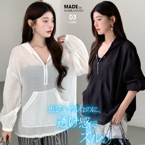 軽やかで涼しい着心地と、上品な透け感を両立した、大人の夏に寄り添うパーカーです。