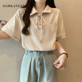[関連ワード] 商品関連:トップス Tシャツ レディース 春 夏 秋 半袖 レースアップ フロントアクセント ポロカラー ドローコード ドロスト ドローストリング ドロップショルダー カットソー 体型カバー モード カジュアルモード ママ お母さん 20代 30代 40代 50代 おしゃれ お洒落 オシャレ かわいい 可愛い カワイイ ダークエンジェル カラー展開:アイボリー モカ ブラック サイズ展開:M L XL