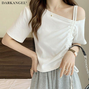 [関連ワード] 商品関連:トップス カットソー レディース 夏 ワンショル オフショル ドロスト 半袖 肩ひも アシンメトリー ドローストリング 肌見せ ストラップ付き Tシャツ ギャザーデザイン ヘルシーコーデ ワンショルダー 片側ストラップ アシメデザイン サイドギャザー カットソー 肩出し トップス レディース シンプル映え ママ お母さん 20代 30代 40代 50代 おしゃれ お洒落 オシャレ かわいい 可愛い カワイイ ダークエンジェル カラー展開:ホワイト ブラック グリーン サイズ展開:M L XL