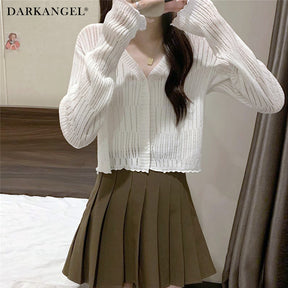 透かしランダムリブVネックショートカーディガン