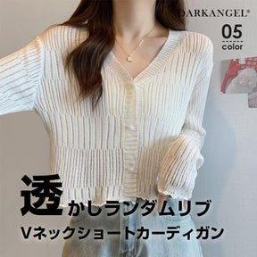 透かしランダムリブVネックショートカーディガン