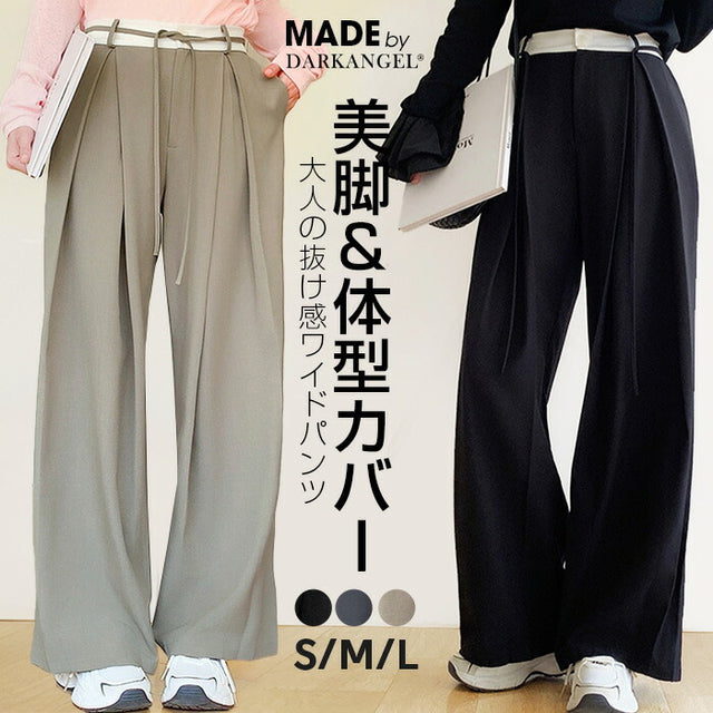 [関連ワード] 【ワイドパンツ】【タックワイドパンツ】【ウエストベルトリボン】【美脚】【体型カバー】【ハイウエスト】【レディース】【きれいめ】【カジュアル】【春】【夏】【秋】【冬】【通勤】【オフィスカジュアル】【旅行】【大人女子】【韓国ファッション】【シンプル】【おしゃれ】【送料無料】 S M L 20代 30代 40代 50代 おしゃれ お洒落 オシャレ かわいい 可愛い カワイイ ダークエンジェル だーくえんじぇる darkangel Dark Angel DARK ANGEL